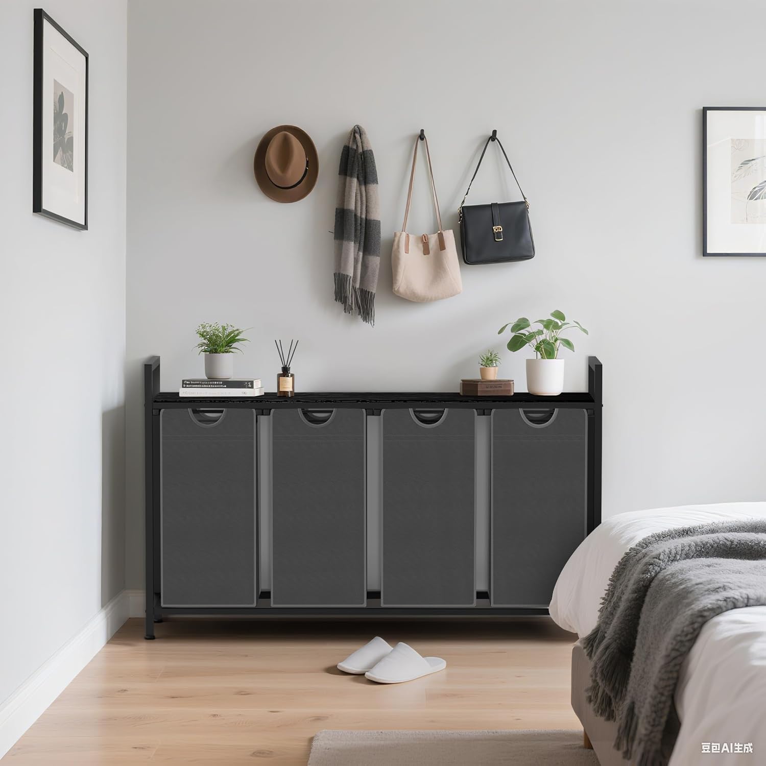 Laundry Hamper, Laundry Sorter with 4 Pull-Out Removable Oxford Fabric Bags Cloth Laundry Basket 4 x 10 Gallons (Grey and Charcoal Black)
