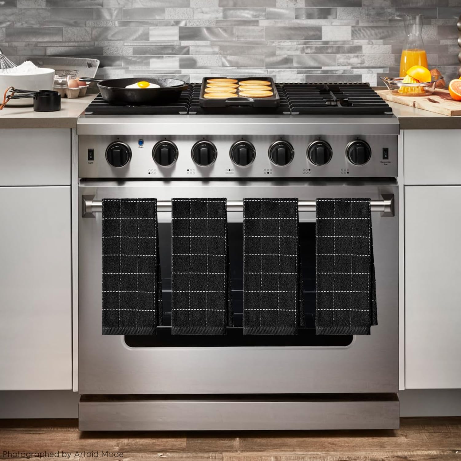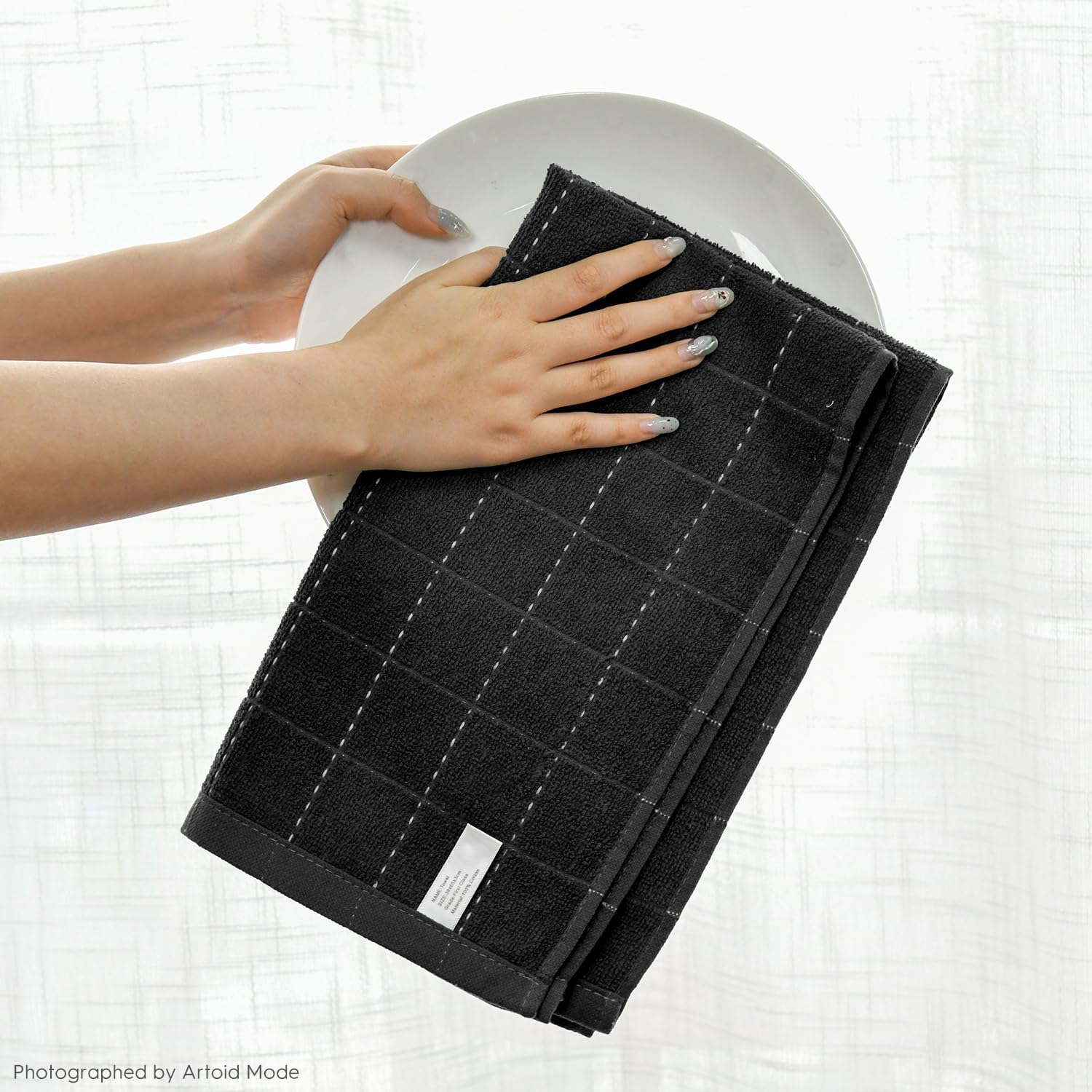 Artoid Mode Checkered Designed Cotton Black Terry Kitchen Dish Towels, 15x25 Inch Soft Absorbent Quick Drying Family Cleaning Tea Towels Set of 4