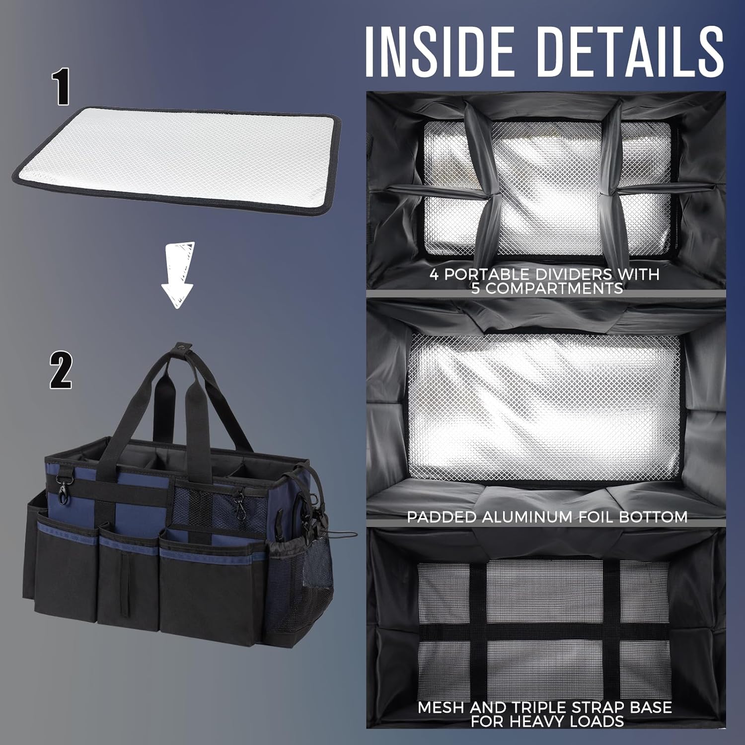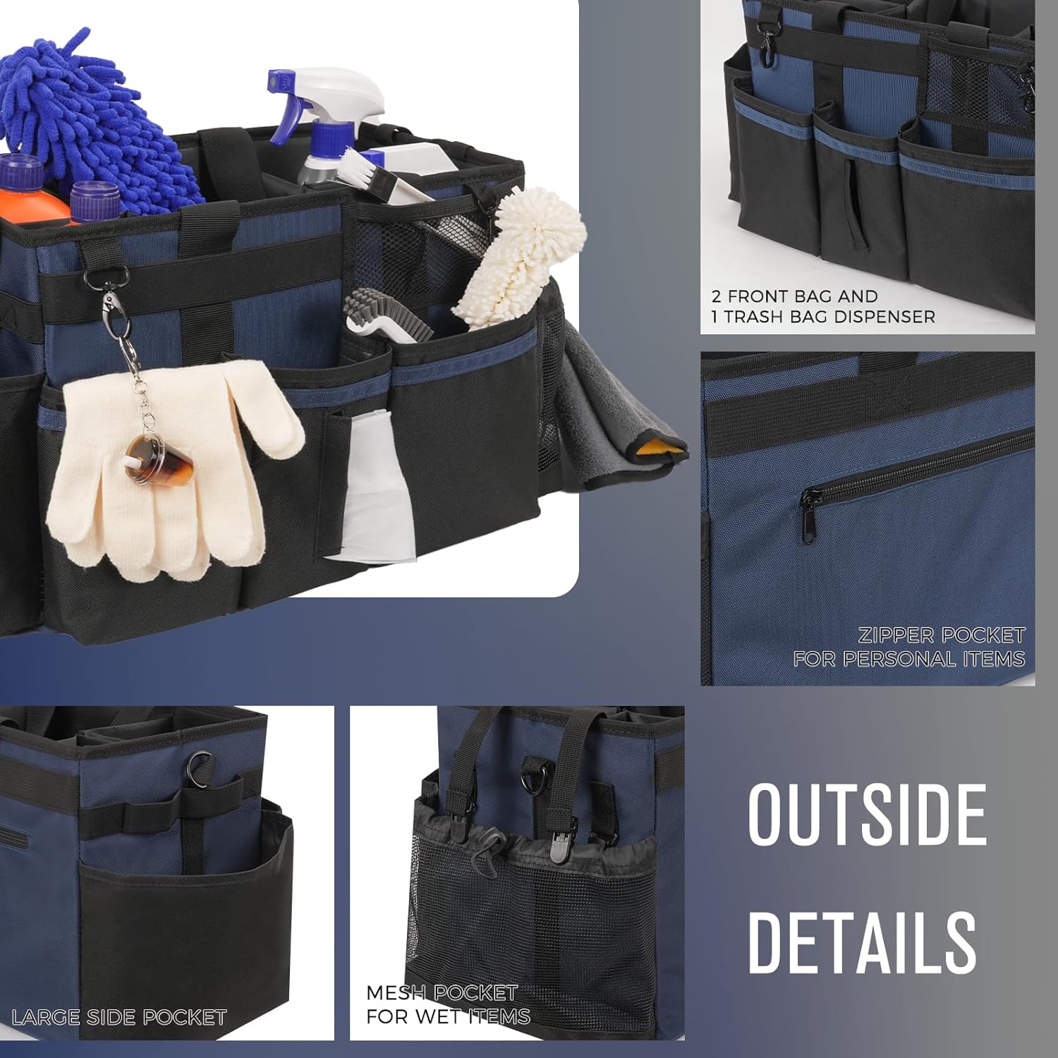 Wearable Cleaning Caddy, Cleaning Caddy Supplies Organizer with Handle & Shoulder Straps for Housekeepers, Under Sink & Car Cleaning Tool Organizers Bag with 4 Foldable Divider (NavyBlue)