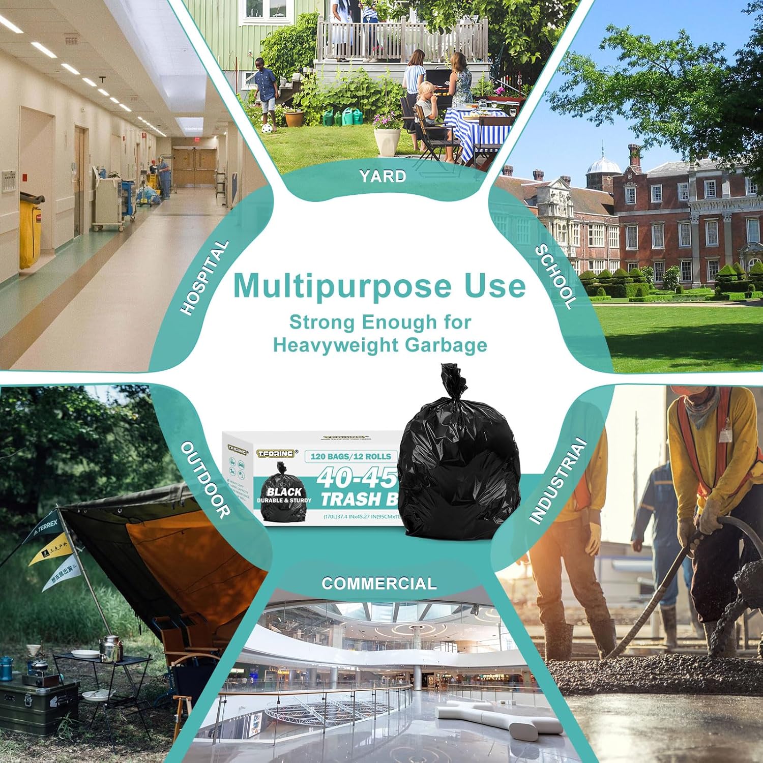 40-45 Gallon Black Trash Bags 120 Count - 37''x45'' Large Garbage Bags Unscented, 40+ Gallon Trash Can Liners, Multipurpose for Office, Outdoor, Recycling and Commercial