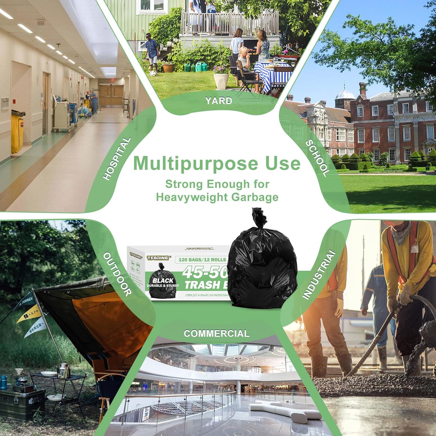 45-50 Gallon Black Trash Bags 120 Count - 38''x47'' Large Garbage Bags Unscented, 40+ Gallon Trash Can Liners, Multipurpose for Office, Outdoor, Yard and Commercial
