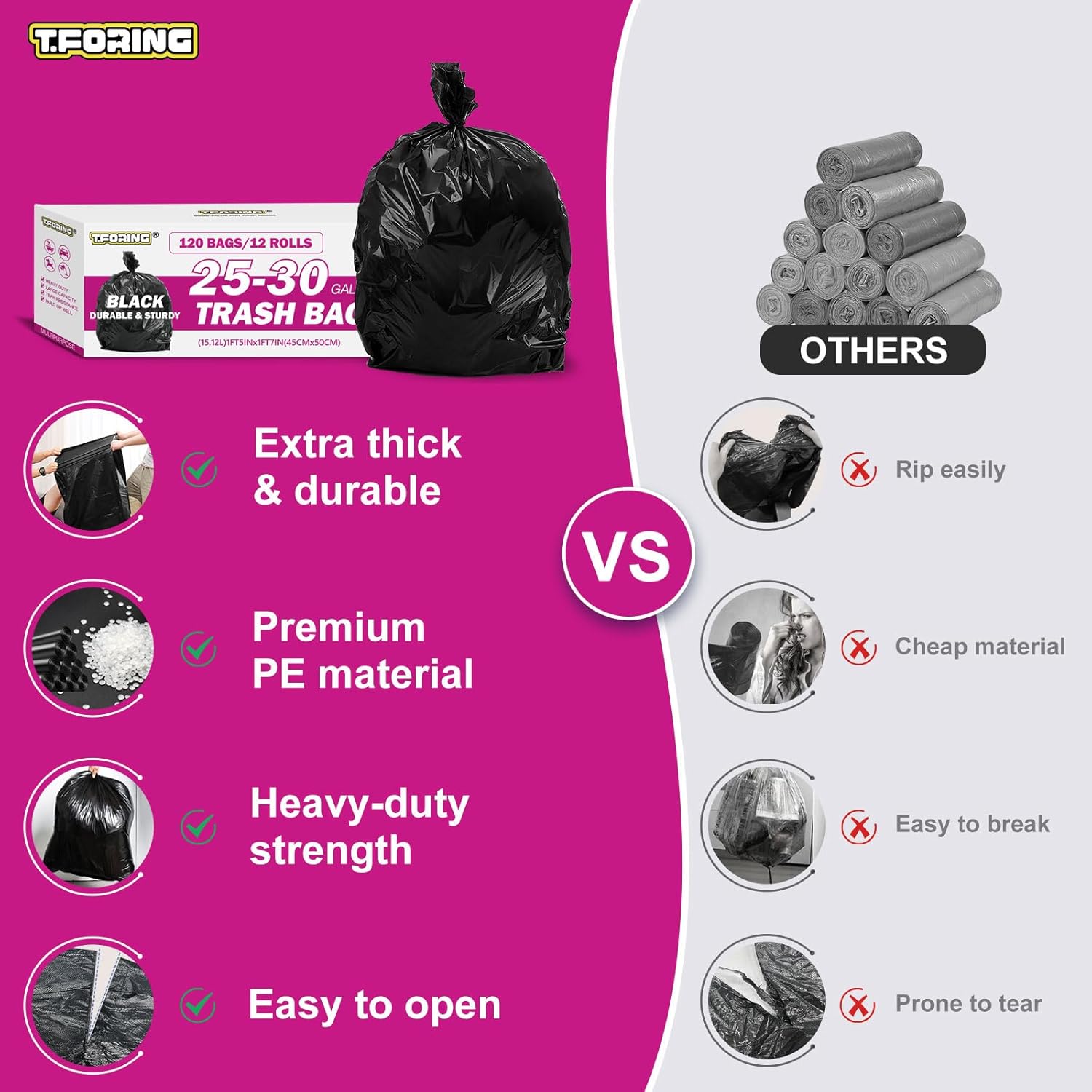 - ăDEPENDABLE FOR DAILY TASKSăCrafted from reliable, tear-resistant material that confidently handles everyday household waste like food packaging, paper, and general clutter. Ideal for common cleanup tasks.