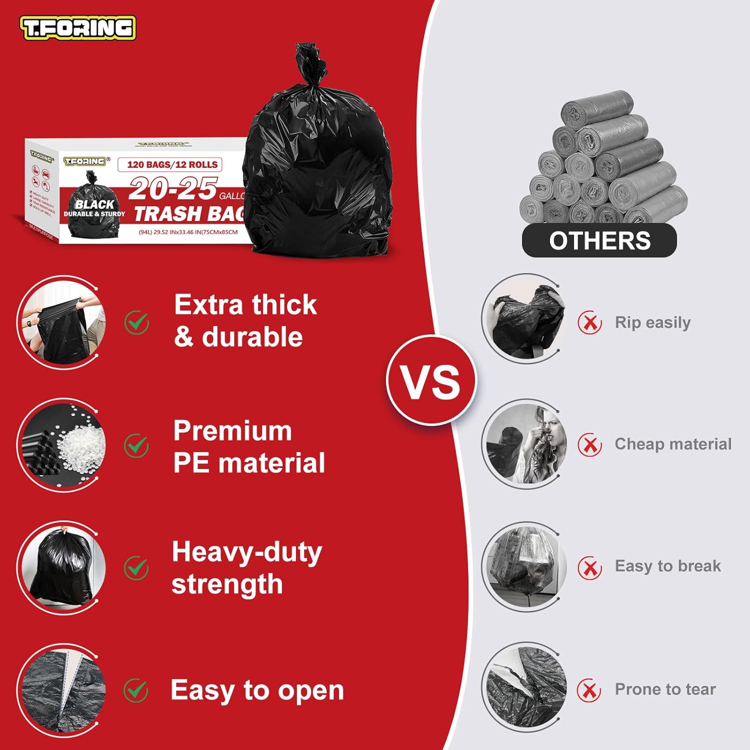 Black Trash Bags 20-25 Gallon 120 Count - 30" x 33" Large Kitchen Garbage Bags, 20+ Gallon Trash Can Liners Unscented, Multipurpose for Home, Office, Daily Household Use