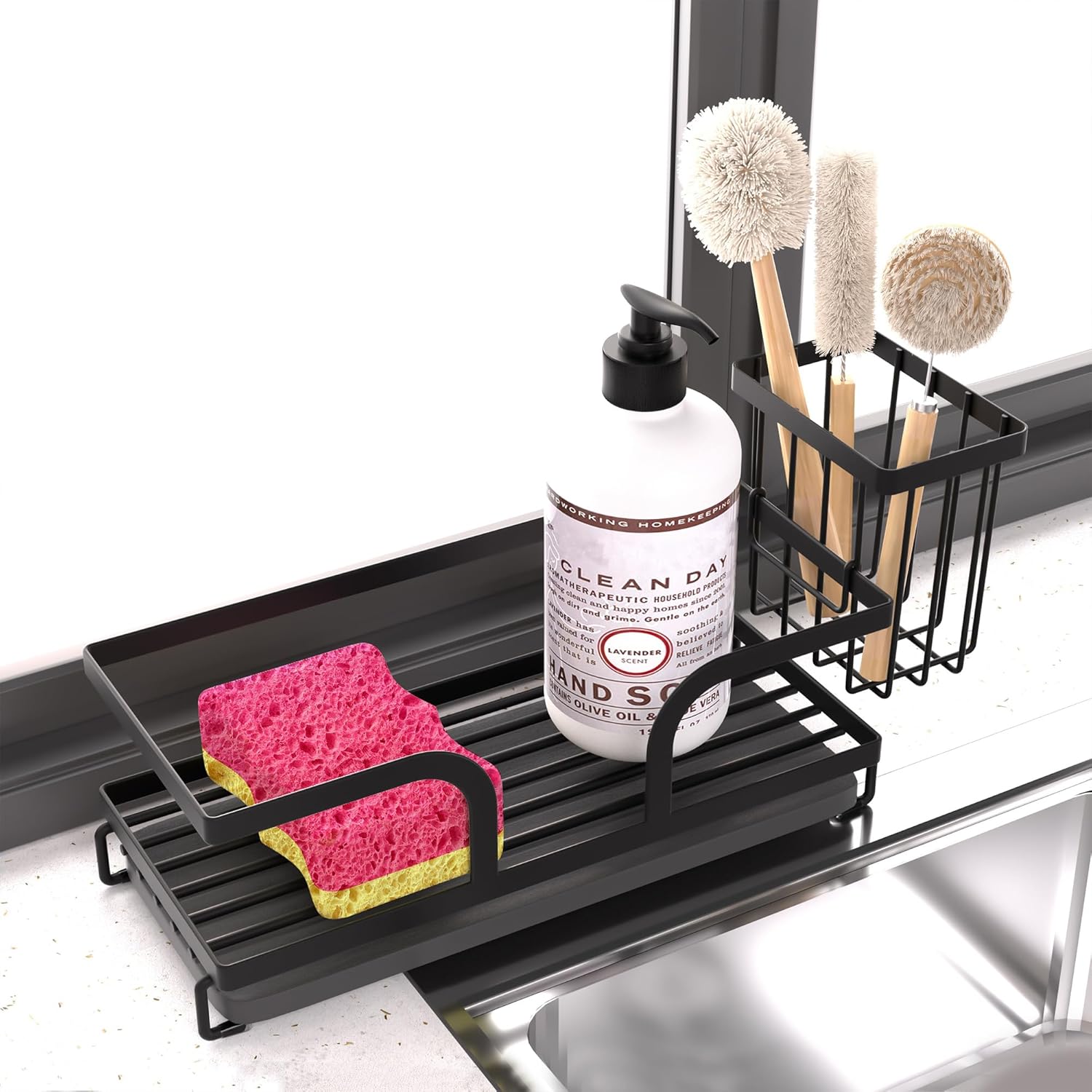 - SPACE-SAVING: Compact countertop organizer keeps cleaning supplies neatly arranged while maximizing your sink space