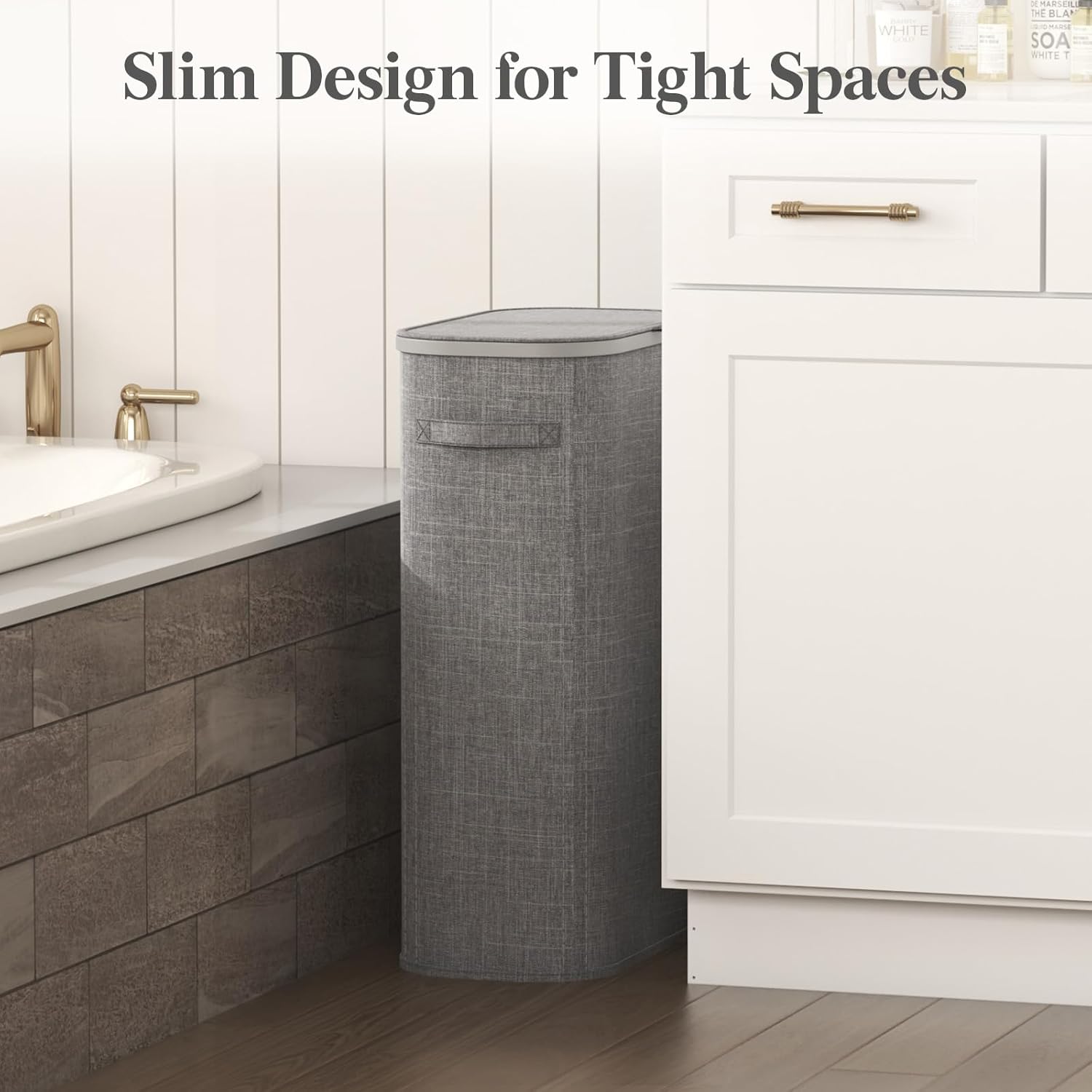 - Perfect for Narrow Spaces: This slim laundry hamper is specifically designed for tight spaces and compact areas; whether it's a narrow bedroom, closet, RV, or a small bathroom,it fits effortlessly, creating more storage; dimensions:16.5 x 9.4 x 25.6 in (42 x 24 x 65 cm)