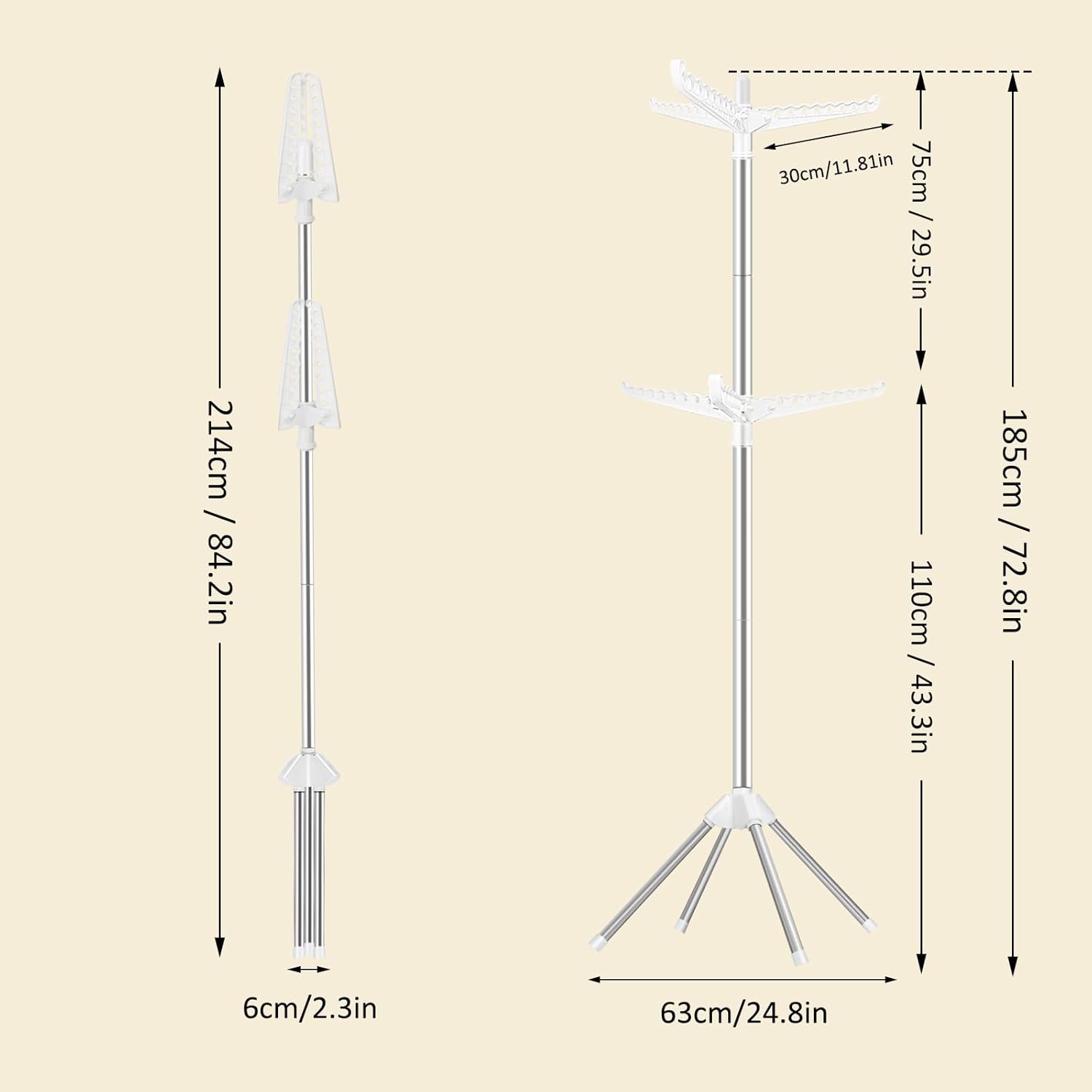 SUYU Clothes Drying Rack,Folding Clothes Drying Tree, 2 Layer with 6 Rotatable Arms,72-Inch Indoor Clothes Rack,Stainless Steel,4 Legs,White and Silver SNJ202