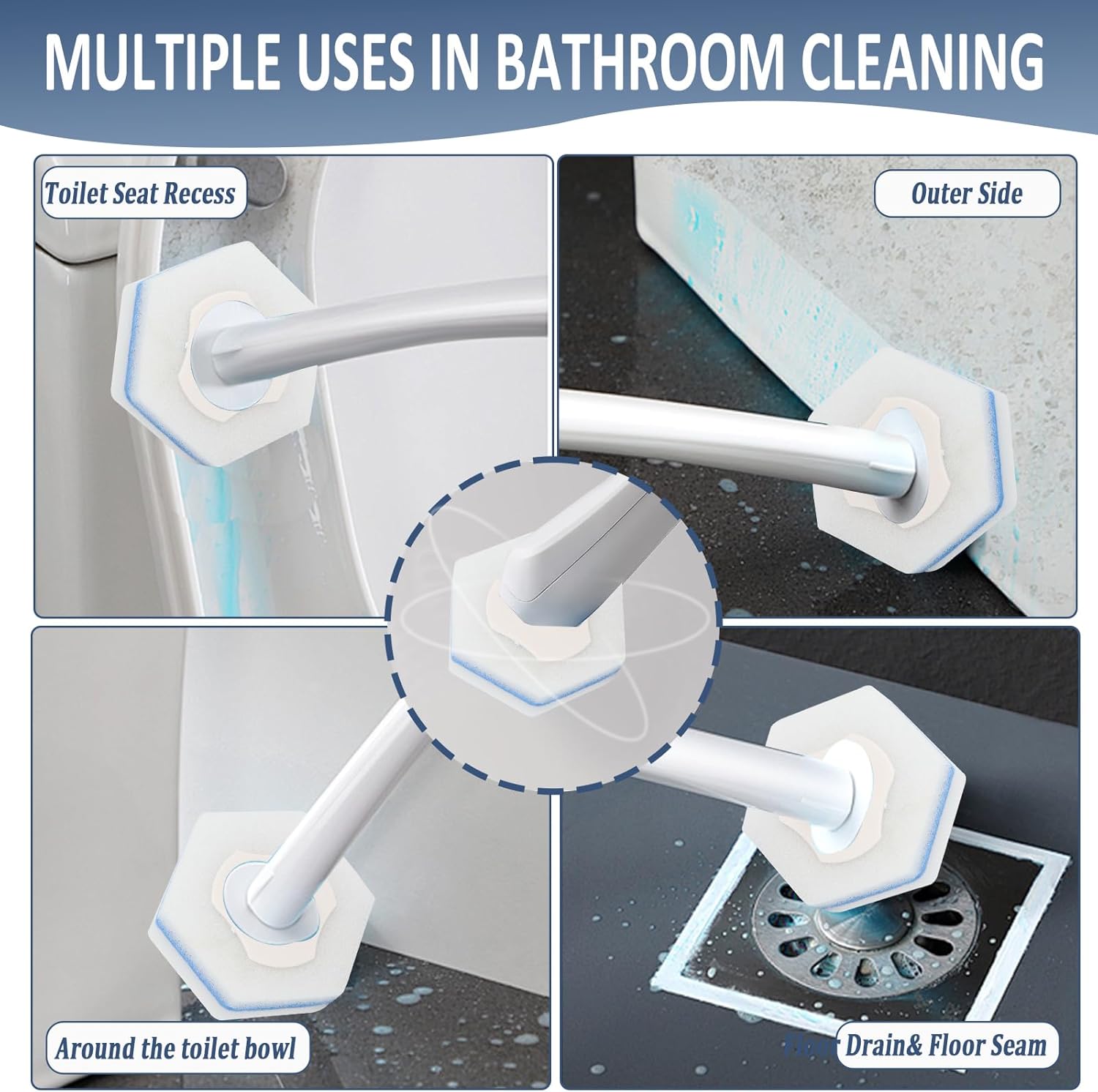 - DEEP & ALL-AROUND CLEANING: The specially shaped disposable toilet bowl wand heads are engineered to reach under the bowl rim and into the drain, effectively targeting hard water stains, rust, and lime buildup. Simply moisten the sponge head with water and clean the dirty areas without the need for additional cleaning agents or cleaning tools.