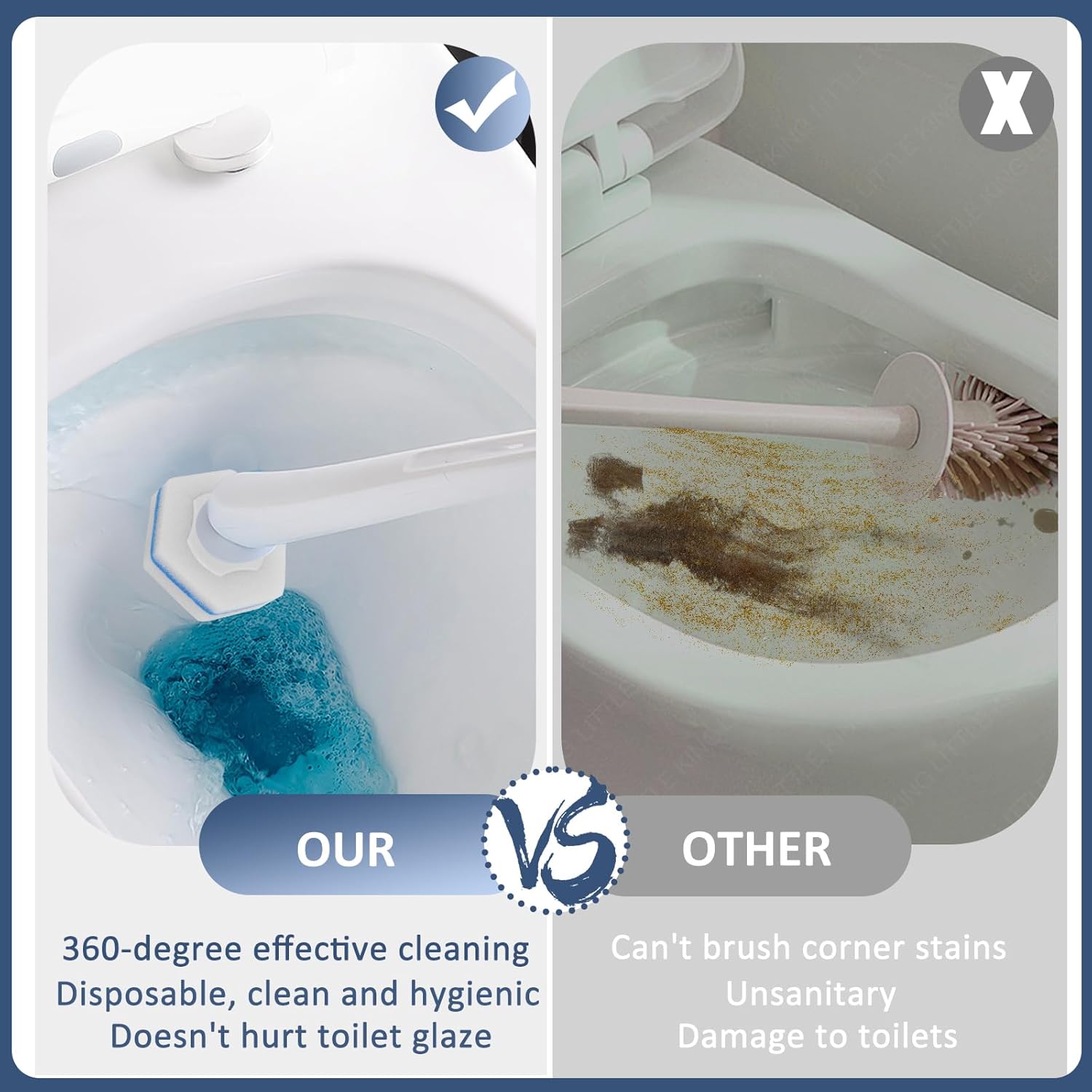 - QUICK & EFFORTLESS CLEANING: Infused with twice the cleaning solution of standard options, these toilet brush refills create a rich foam that quickly lifts away dirt, grime, and buildup. After cleaning, simply detach and discard the used head without ever touching it, keeping your hands and home more sanitary.