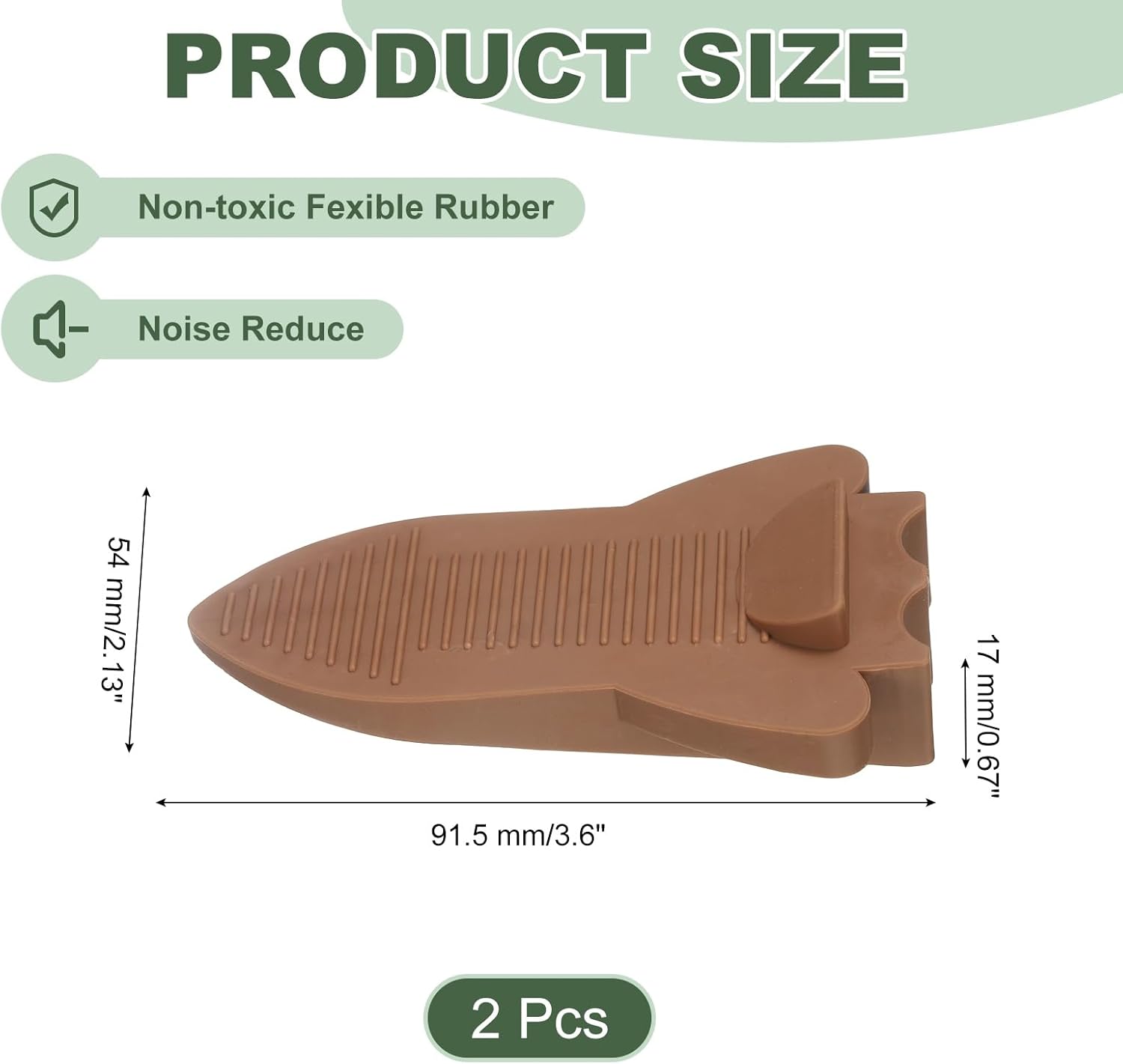 - 【Package and Dimension】Length: 91.5 mm/3.6 inch, Width:54 mm/2.13 inch, Height: 17 mm/0.67 inch, Package Content: 2 Pcs x Door Stoppers.