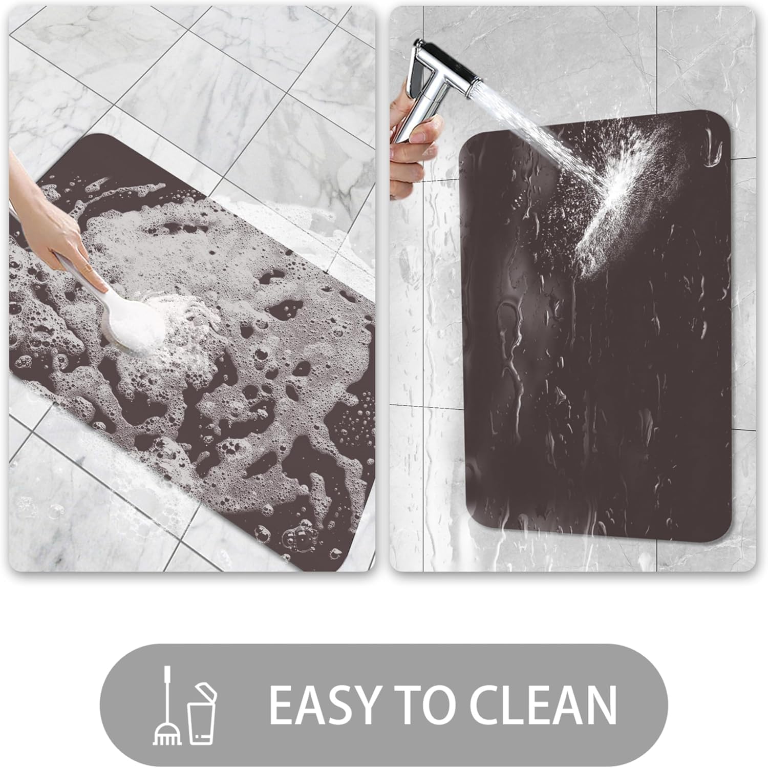 - 【Absorbent & Quick-Dry】Crafted with diatomaceous earth, this mat can absorb up to 1.9 gallons of water per square yard, making it perfect for high-moisture areas like bathrooms. Use it as an entrance mat to protect your floors from water damage, dirt, and debris, ensuring a clean and dry living space