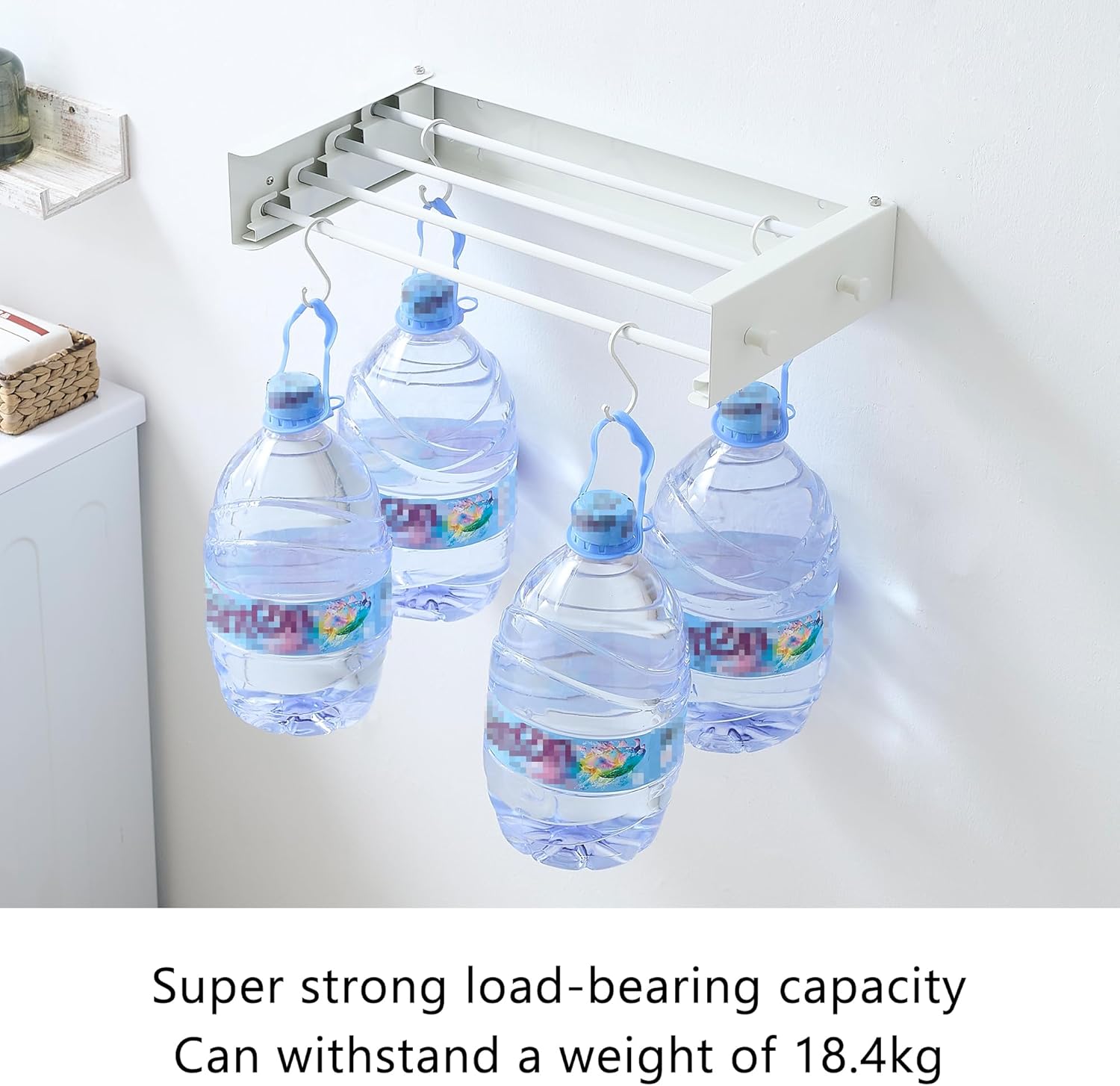 - Heavy Weight Capacity: Solid structure, main frame 1.4mm thick, strong bearing capacity and stability, rust-proof and wear-resistant. Foldable wall-mounted clothes drying rack: 4 heavy aluminum rods, equivalent to 10.5 feet of linear suspension line, can withstand 40 pounds of weight. Use this expandable clothes hanger in your laundry and bathroom to create a flexible and convenient clothes hanging system