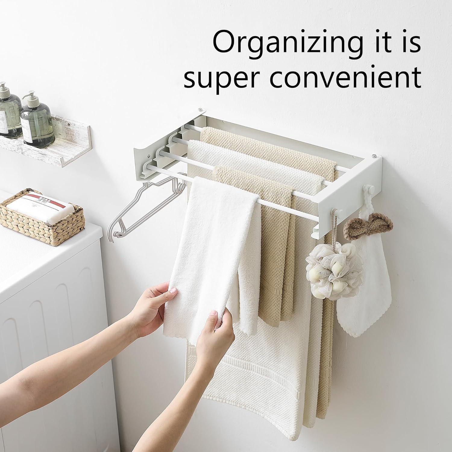 - Easy Installation:This retractable towel rack has a unique mounting style with complete hardware, which is faster and easier to install. With the easy installation process, the collapsible stainless steel drying rack is ready to use in a few minutes