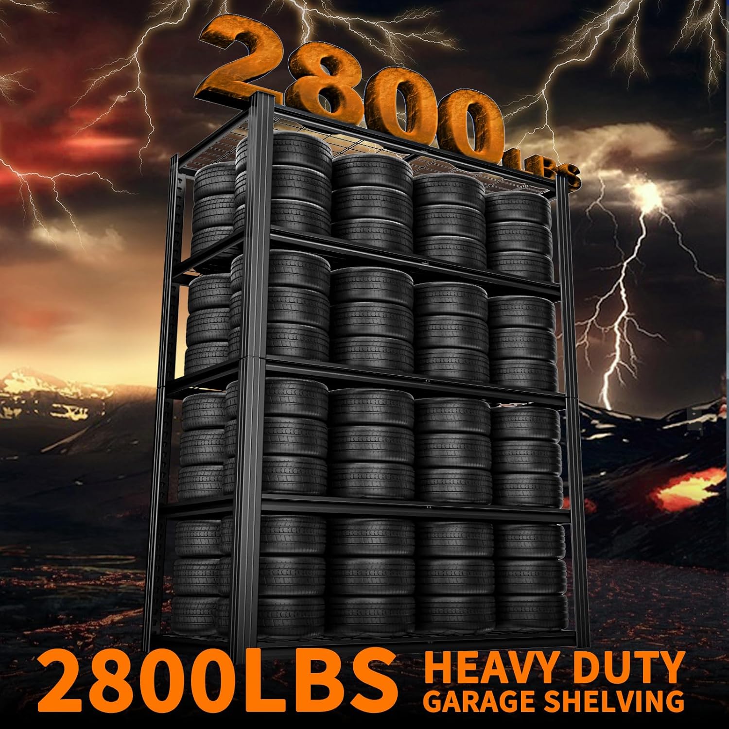 - ă2800 LBS Heavy Duty ShelvingăThis heavy duty garage shelving unit has thickened double metal legs. Made of high-quality metal, each solid thickened metal shelving with 1 upgrade support strip beneath can hold up to 560 lbs, with a total bearing capacity of 2800 lbs, which makes industrial garage shelves heavy duty more stable and solid than normal metal shelves for storage and more stuff can be stored.