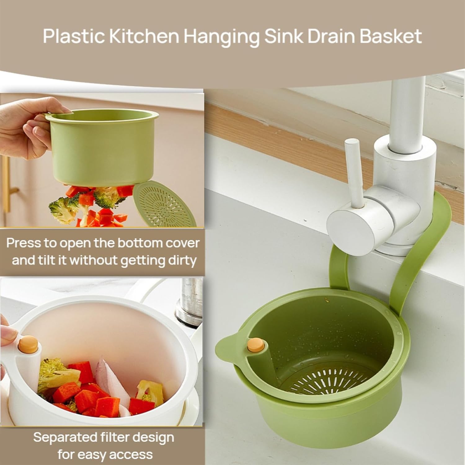 - Nhdap Single-Press Dumping of Residue: This kitchen waste collector sink filter features a push-type automatic dumping function, allowing you to easily empty food waste with just one click, no need to touch, keeping your hands clean and easy to handle