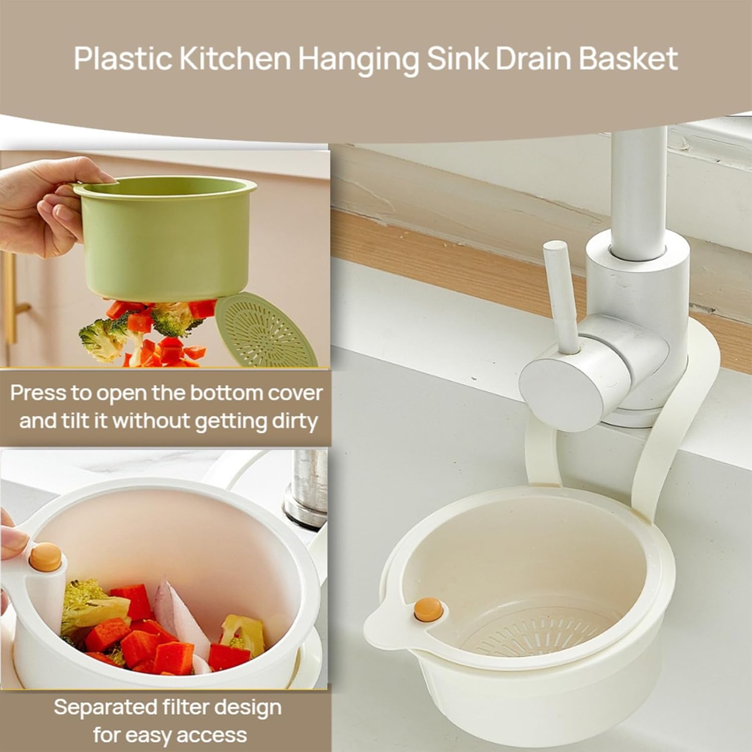 - Nhdap Single-Press Dumping of Residue: This kitchen waste collector sink filter features a push-type automatic dumping function, allowing you to easily empty food waste with just one click, no need to touch, keeping your hands clean and easy to handle