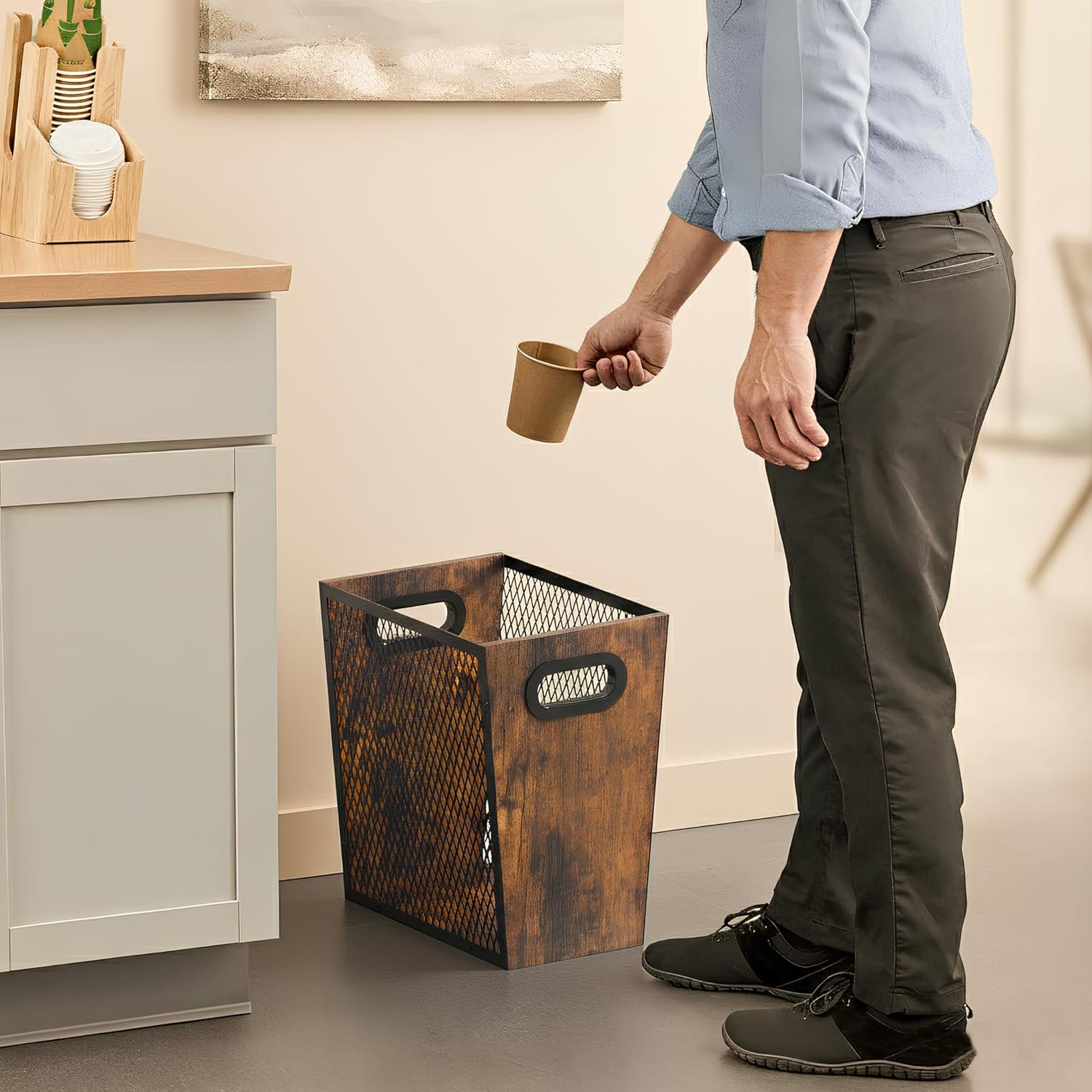 - 【Premium Materials & Stylish, Easy Assembly】Crafted from Hard iron mesh and mdf board, this office trash can blends industrial durability with natural warmth. Its sturdy frame ensures stable structure, while the retro-modern design adds decorative flair to your space.