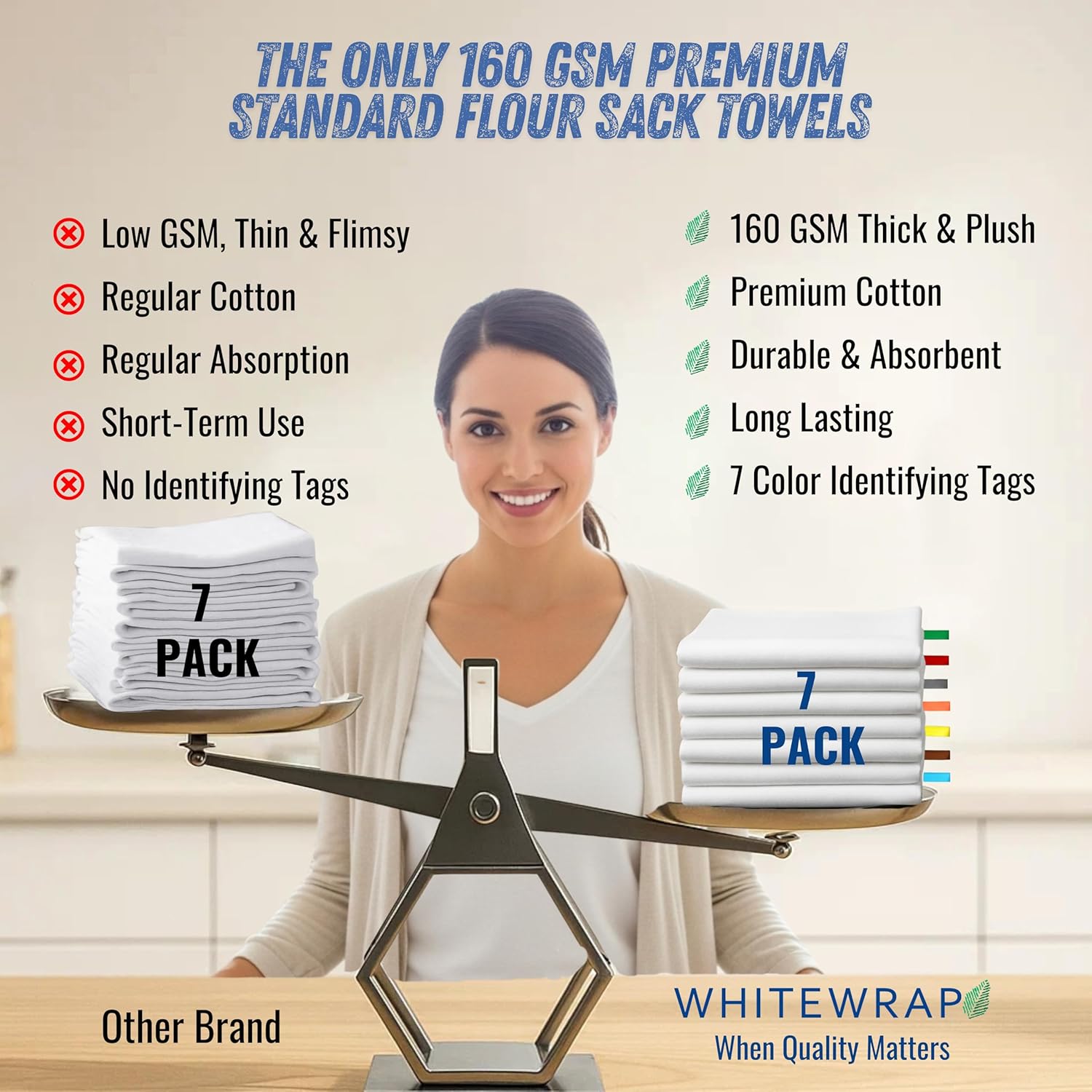 7-Pack Flat Flour Sack Towels – 100% Cotton Kitchen Dish & Tea Towels for Crafting, Embroidery, Baking & Bread Proofing – Thick, Absorbent, Quick-Drying – White (28x28)