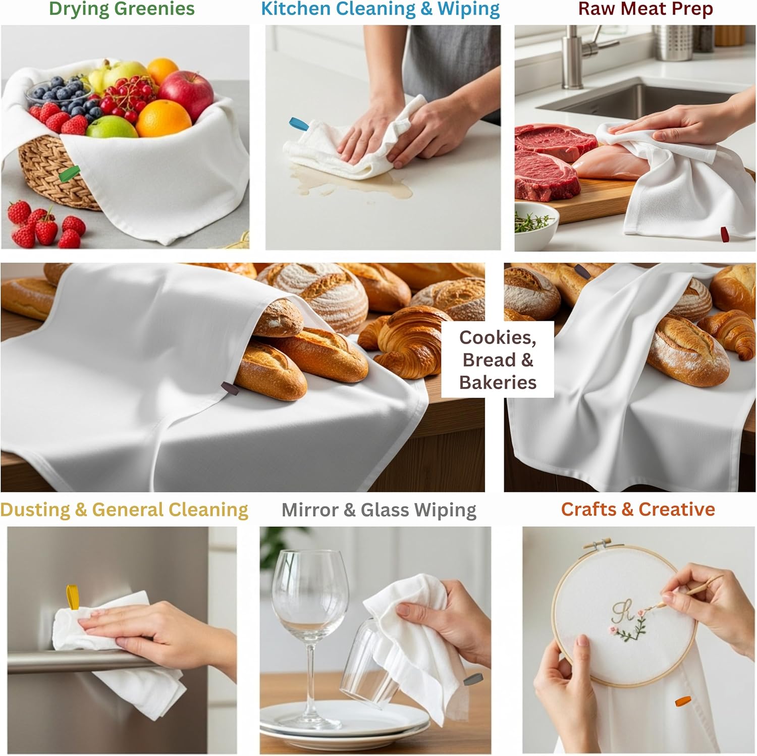 - High-Quality Cotton: Crafted from 100% pure cotton, these flour sack towels are thick, highly absorbent, and designed to dry quickly—perfect for everyday kitchen use.