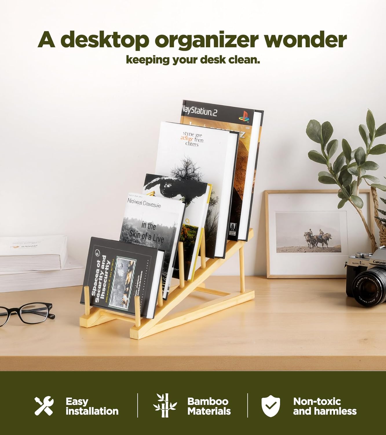 - Tool-Free Assembly: Effortlessly snap together 5 sturdy bamboo pieces (2 slanted racks + 3 connectors). Just align the pegs with the holes for a rock-solid, wobble-free fit—no tools needed!