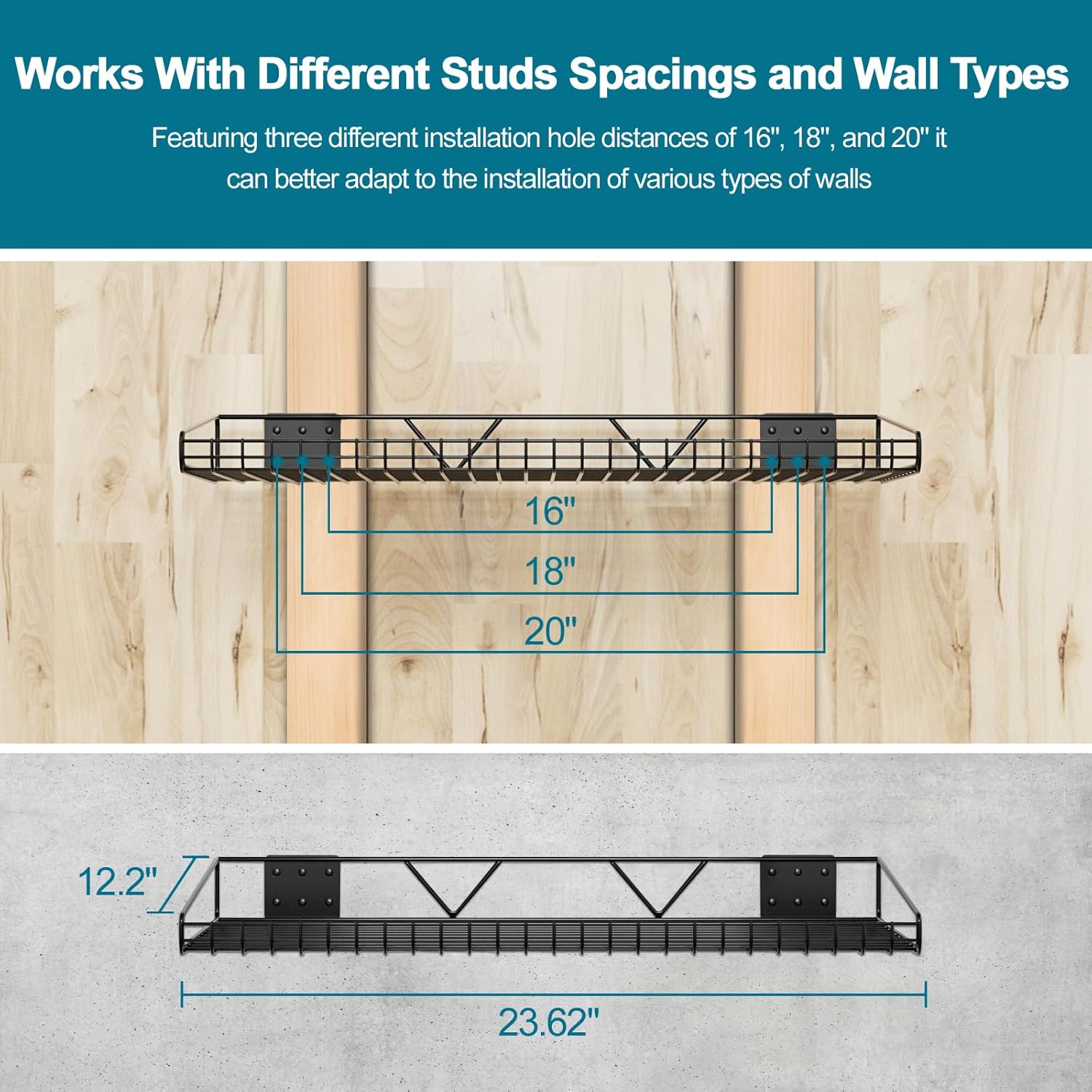 - 4 packs 12inch X 23.8inch heavy-duty wall shelves can help you organize your garage, laundry room, and more with ease.