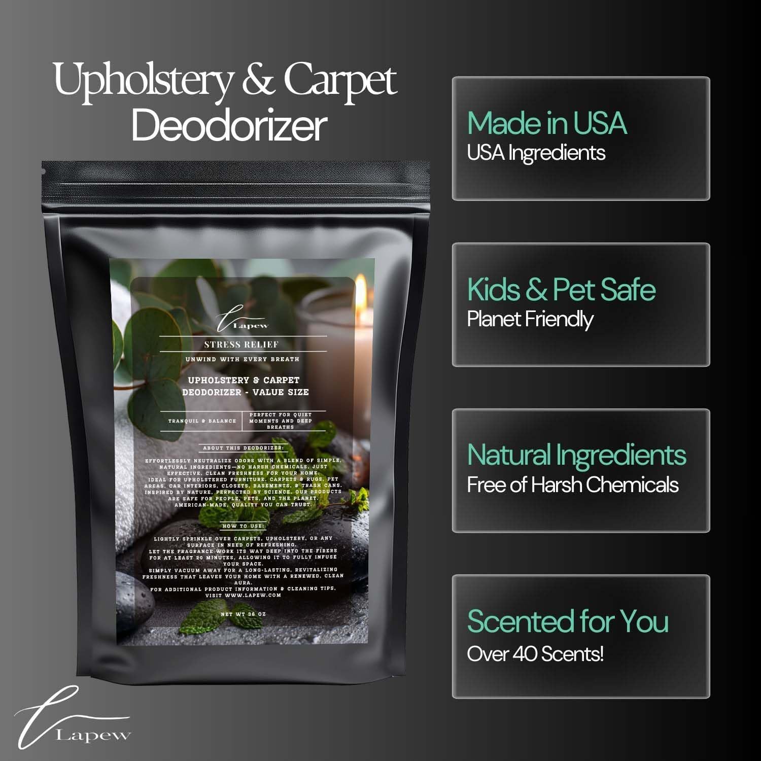 - Powerful Odor Eliminator for Strong Odors: Say goodbye to stubborn smells with the Lapew Stress Relief Carpet Freshener Powder, specially formulated to tackle everyday room odors.