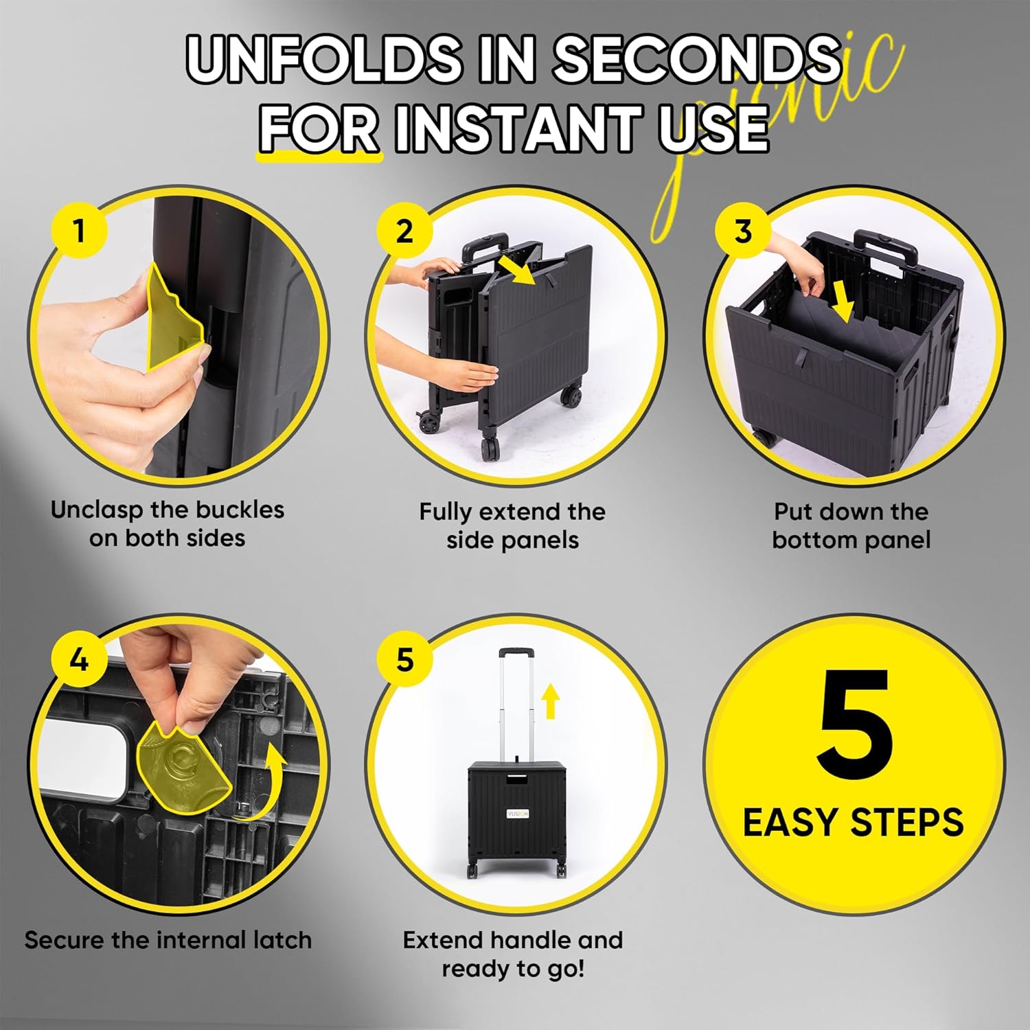 - 【Quick Setup & Multi-Purpose Use】Unfolds in just 3 seconds—no tools needed. Use this folding cart with wheels collapsible for shopping, travel, moving, office, or teaching needs. As a multifunctional utility cart on wheels, it’s convenient, versatile, and ready whenever you are.