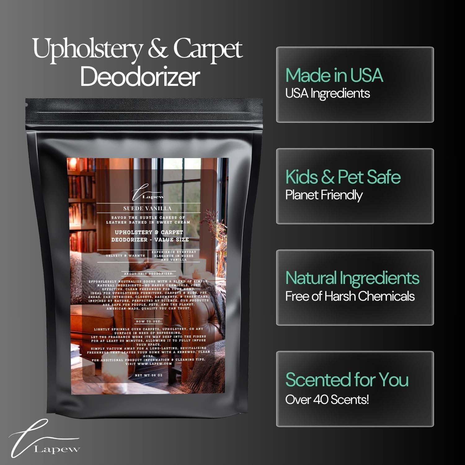 - Powerful Odor Eliminator for Strong Odors: Say goodbye to stubborn smells with the Lapew Suede Vanilla Carpet Freshener Powder, specially formulated to tackle everyday room odors.