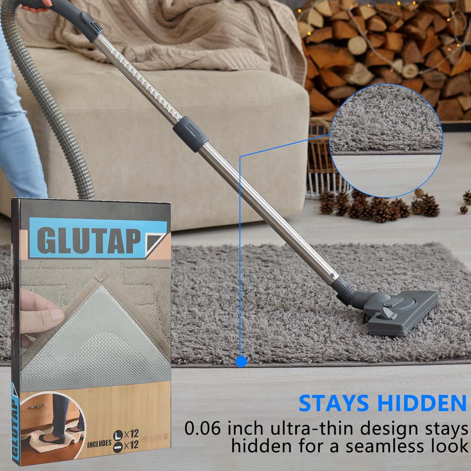 24 PCS Carpet Tape,Carpet Edge Anti - Curling Fixer, Non-Slip Carpet Pad Suitable for Tiles and Hardwood Floors