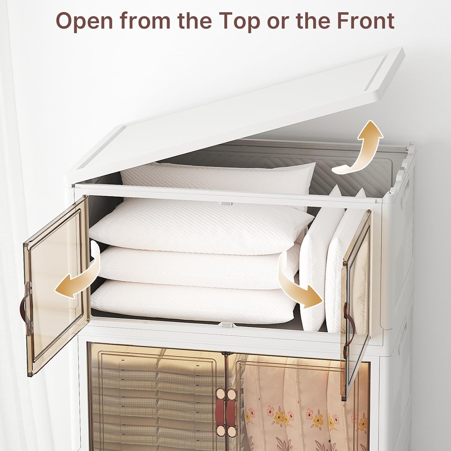 - 【Ultra-Large 660QT Capacity 】: Say goodbye to clutter with these stackable storage bins! This 4-tier extra large stackable storage bins system offers a massive 660QT capacity — 165QT per layer — perfect for storing bulky comforters, pillows, seasonal clothes, and more. Create a neat, organized home with ease.