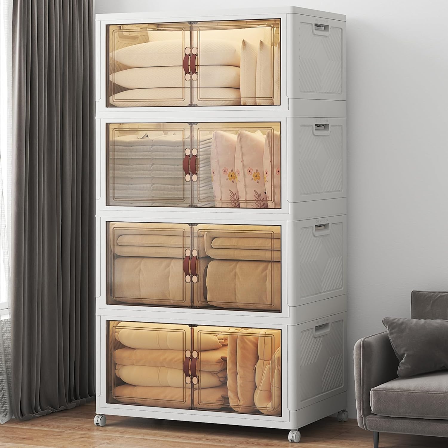 Extra Large Stackable Storage Bins with Lids & Wheels & Door, 660QT-165QT/41GAL*4Pack Foldable Collapsible Closet Organizers, Plastic Containers Drawers for Bedroom Dorm Garage