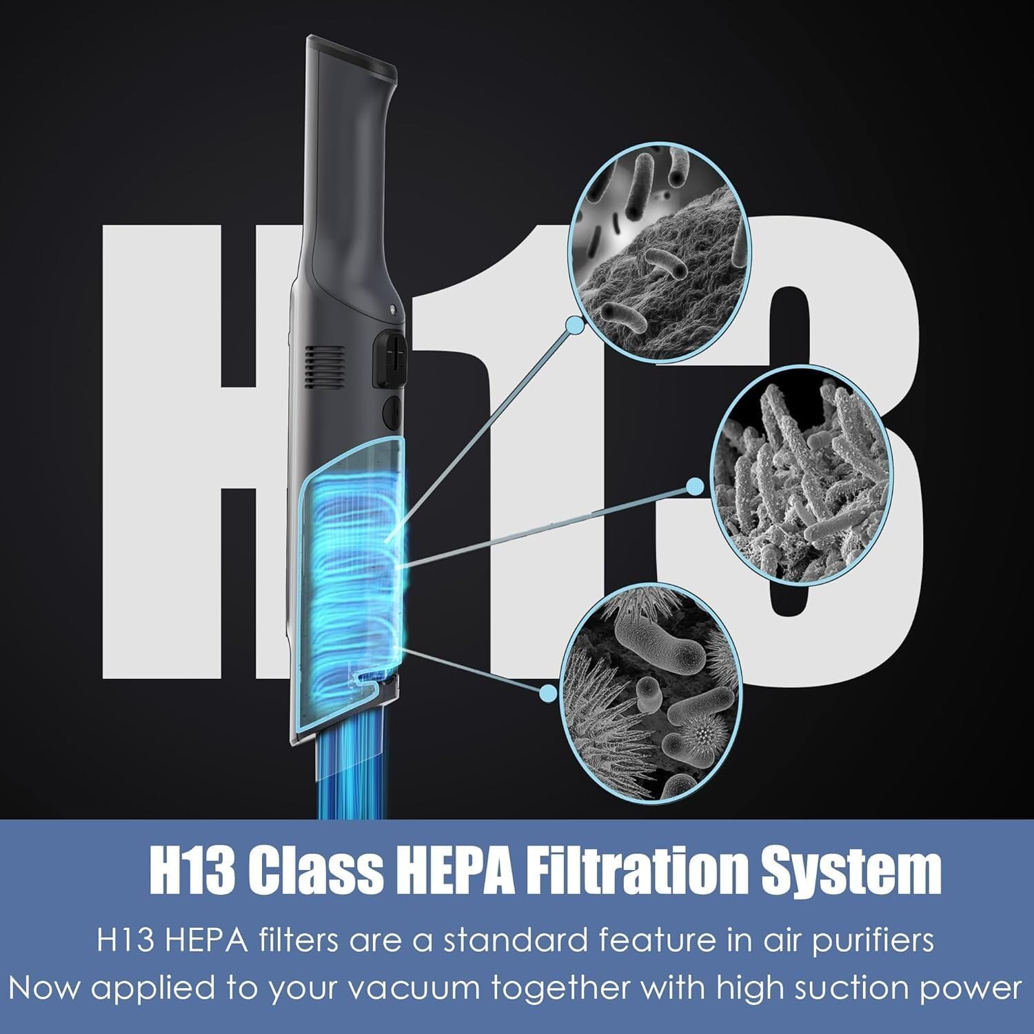 - Advanced H13 Class Filtration System: Experience top-tier filtration with the H13 HEPA filter, ensuring exceptional suction performance while keeping the air in your home clean and fresh. Effortlessly clean up various messes with ease.