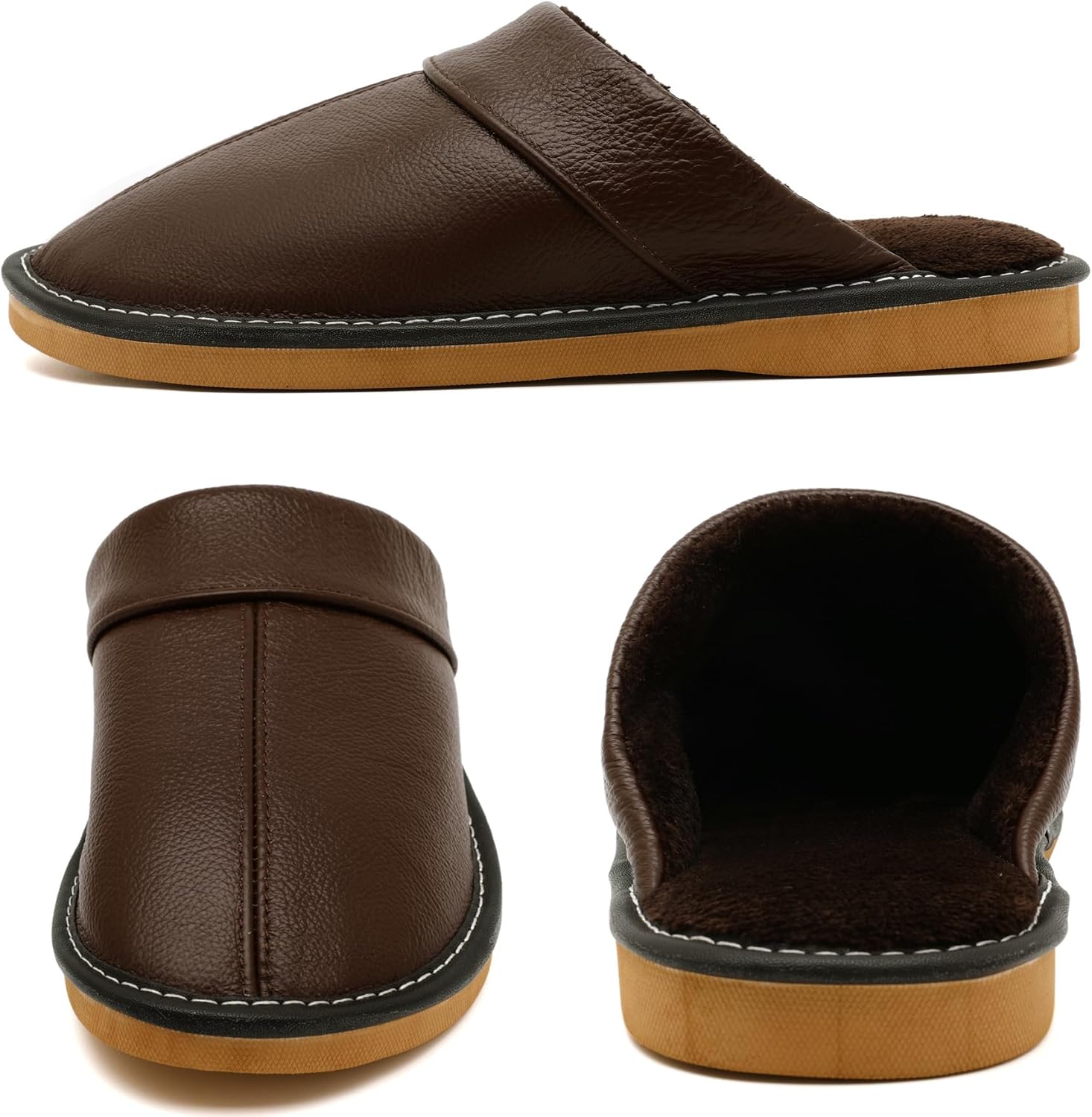 - 【Premium Material】The upper of these leather slippers is covered by soft and breathable genuine cattle hides.