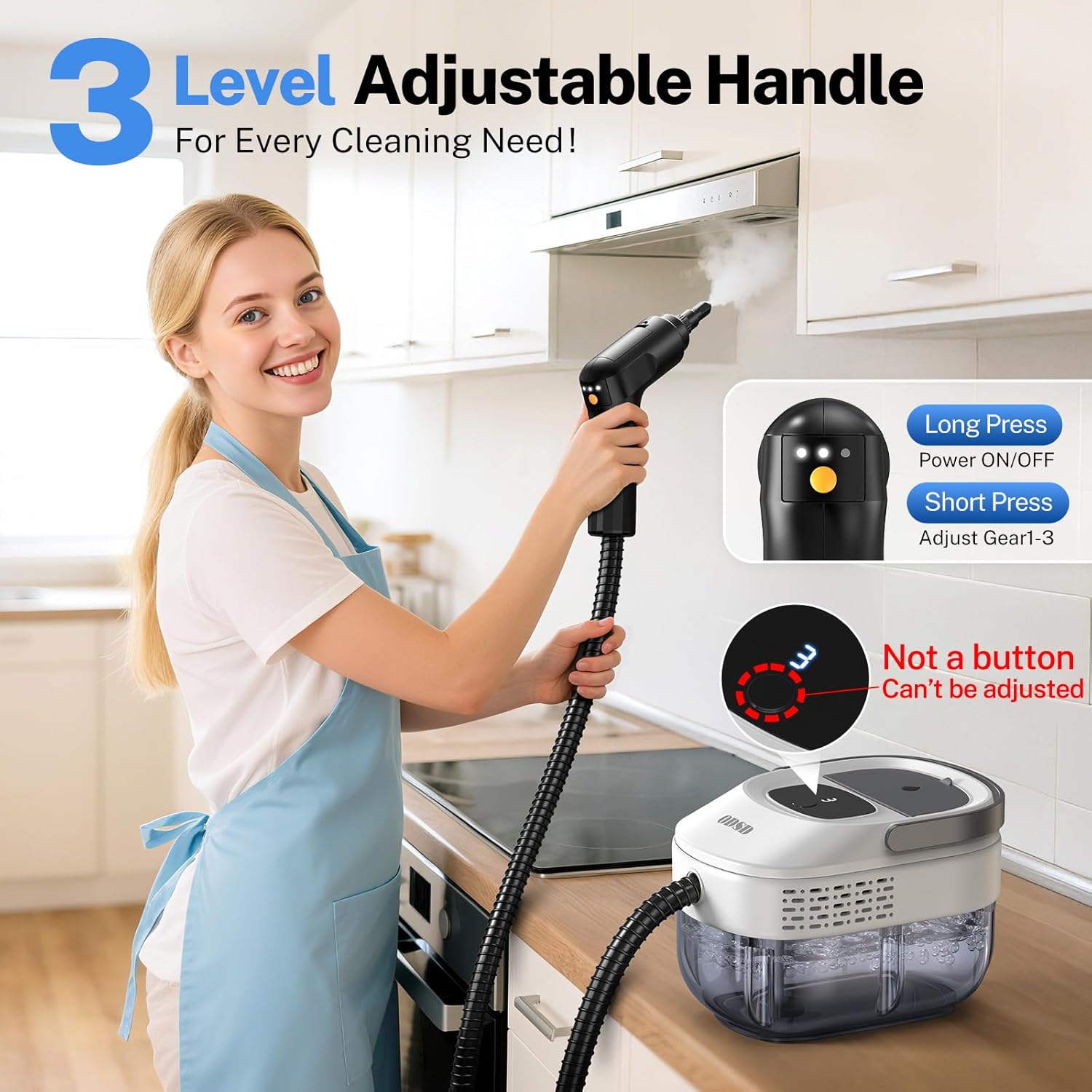 - 【3-Level Steam Control with Handle Button】Customize your clean with ease! Adjust steam intensity directly from the handle—low for delicate surfaces like upholstery, high for tough tile grime or auto engines. Effortless and user-friendly.