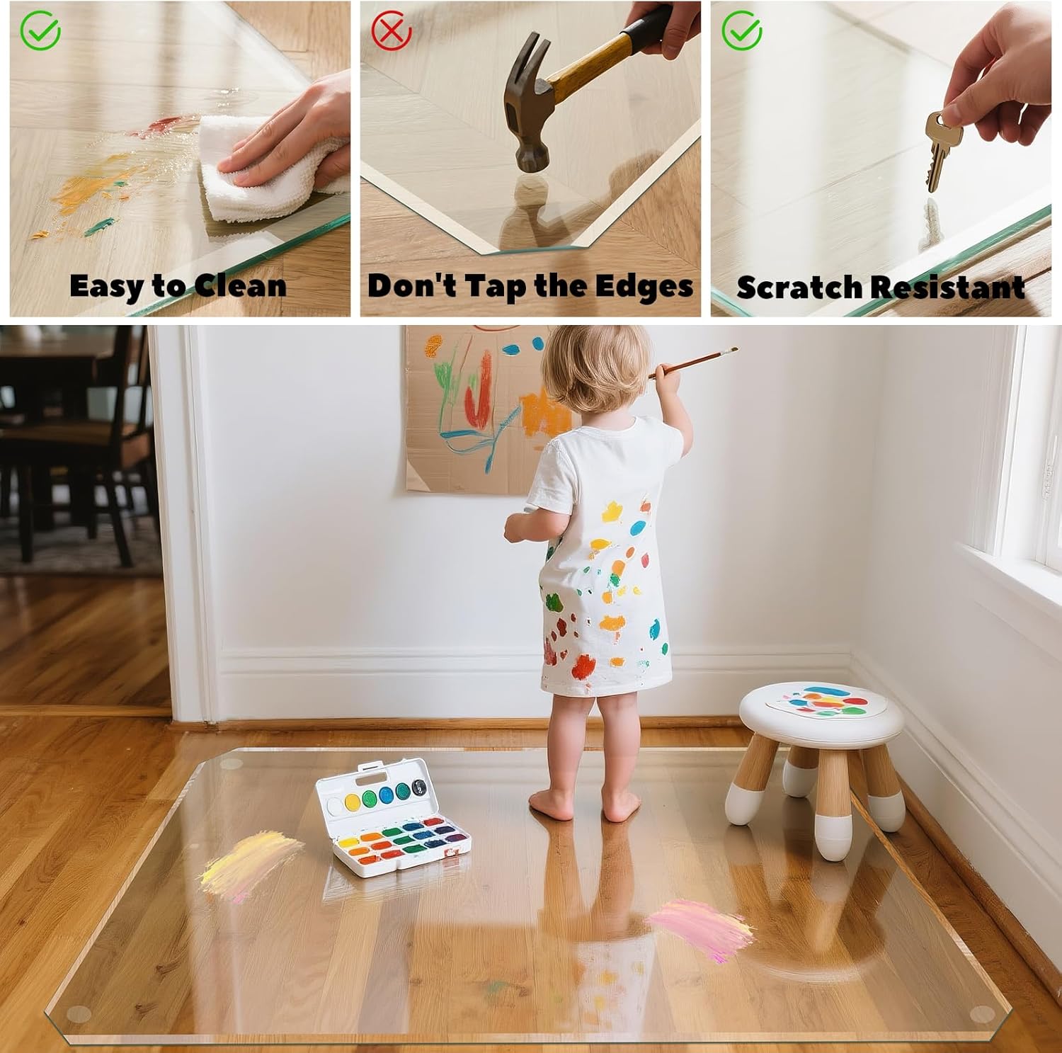 - ✅PREMIUM BEVELED EDGES DESIGN: This glass floor chair mat with beveled edges ensures that ensures safe sliding of the chair, making it easy to transition from the glass floor cushion to the ground without suddenly falling off, which is more ergonomic and reduces knee or waist joint pain. providing a smooth and relaxed experience.