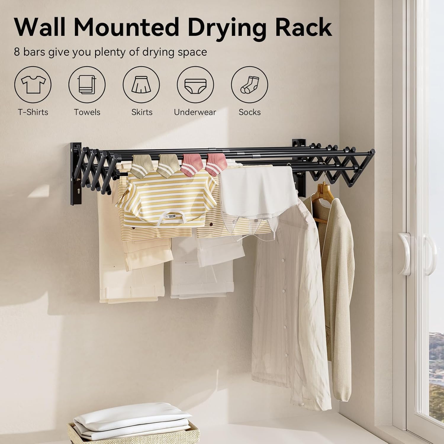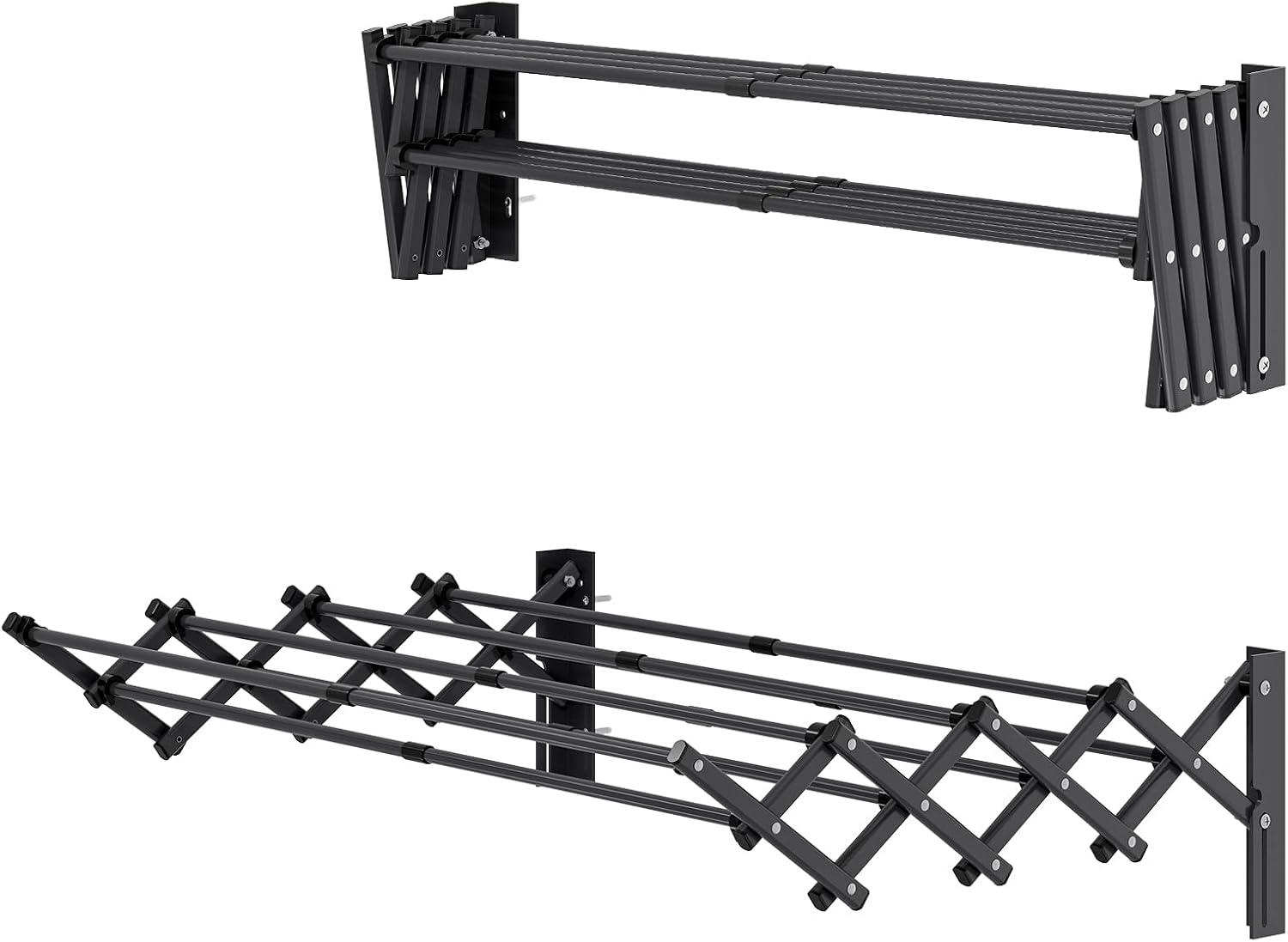 APEXCHASER Clothes Drying Rack Wall Mount, Laundry Drying Rack, Accordion Collapsible Clothes Airer, Towel Racks for Bathroom Balcony Laundry Room Wall Mounted, Drying Rack for Clothing, Black