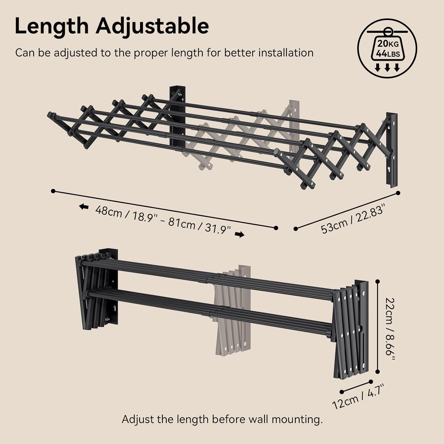 - Easy to Setup - The foldable drying rack for clothing needs simple assembly. Attach the rails to the rack and adjust the towel rack to needed length before mounting it on the wall.