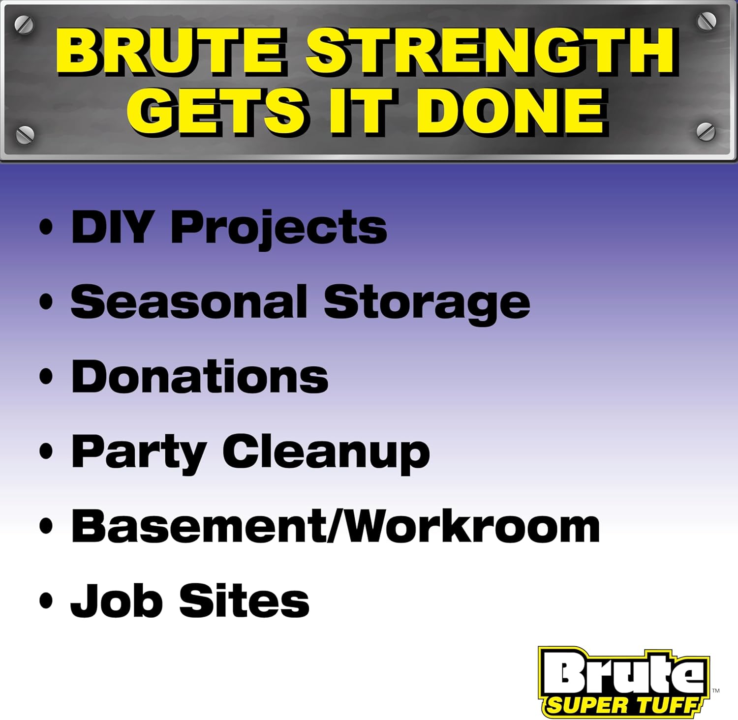 - Multiple Uses Indoors & Out – Count on these extra-large trash bags for your toughest jobs at work or at home; Brute contractor bags are perfect for job sites, DIY projects, garage & basement cleanup, yardwork, bulky seasonal storage, donations, and more