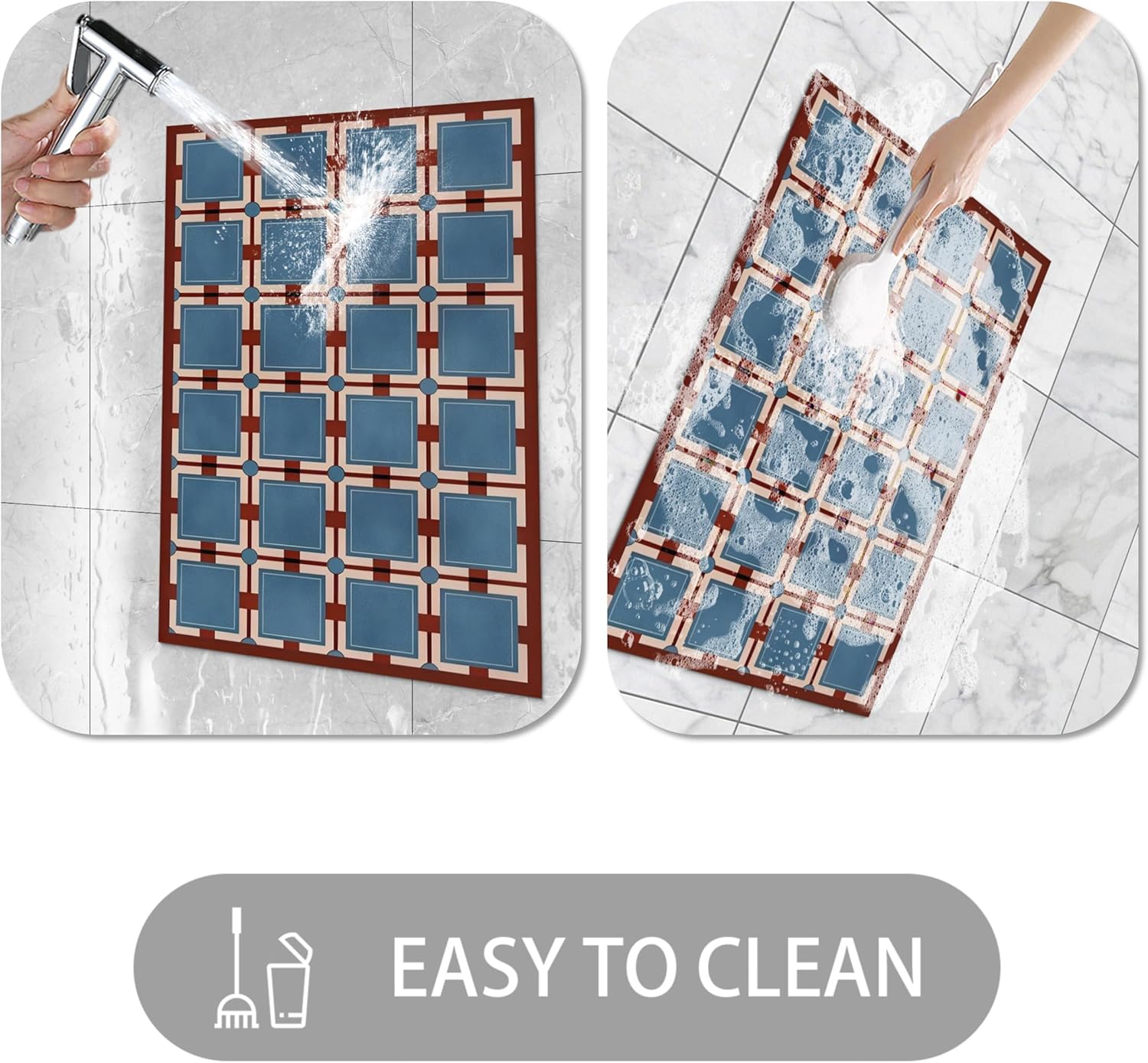- 【Non-Slip & Easy Clean】Natural rubber has higher durability and tear resistance than synthetic materials, with minimal odor. This mat has a slip-resistance coefficient of 0.54 (far exceeding the standard value of 0.27), providing reliable safety on wet floors. The soft yet durable surface is easy to care for—brush, rinse, vacuum clean