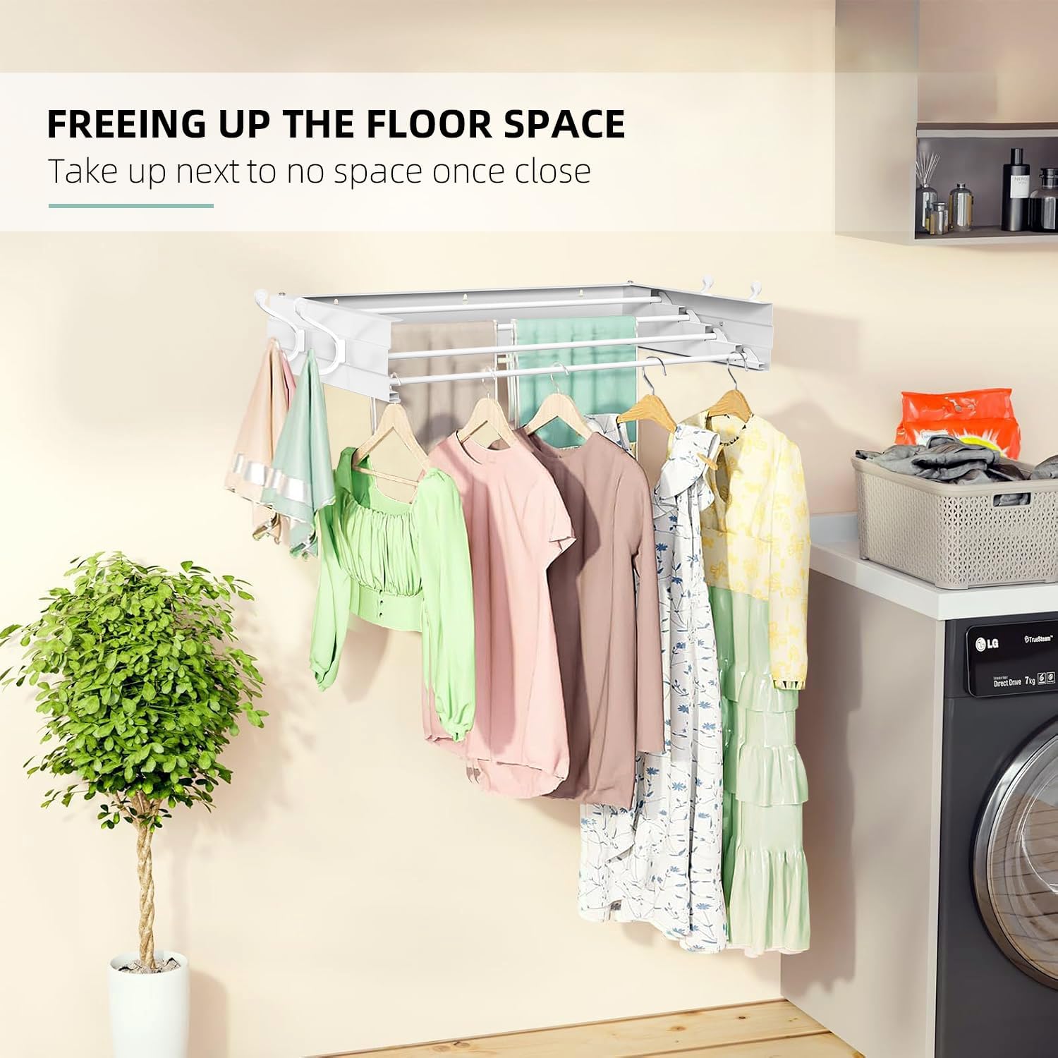 - ✅【Save Space and Save Money】Folding for indoor or outdoor, this laundry clothes drying rack is a great space saver. Compact, retractable wall-mounted design to maximize your limited space or add elegance to your spaces. Great for space constrained homes, apartments, hotels, laundry rooms. When not in use, fold it quickly to store until ready to use again. Compared to other inexpensive clothing drying rack, you don't need to replace them every year, you can save lots of money.
