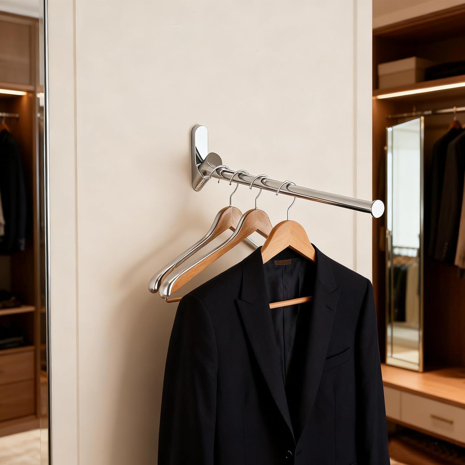 - 【Versatile & Space-Saving Design】 The 180-degree swivel design provides extra hanging space when needed, and conveniently folds flat against the wall when not in use. Its sleek, minimalist style complements closets, bedrooms, bathrooms, laundry rooms, and even retail shops for product display.