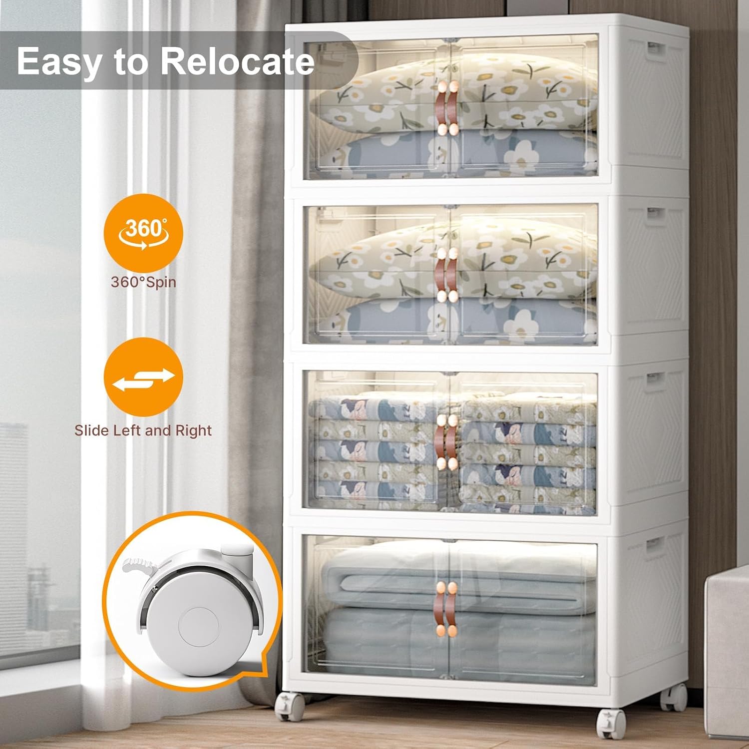 - 【Smooth Mobility with Locking Wheels】: Easily move your storage wherever you need it. These stackable storage bins with wheels feature four smooth-rolling casters, including two locking brakes, keeping your bins stable yet mobile — great for bedrooms, dorms, or offices.
