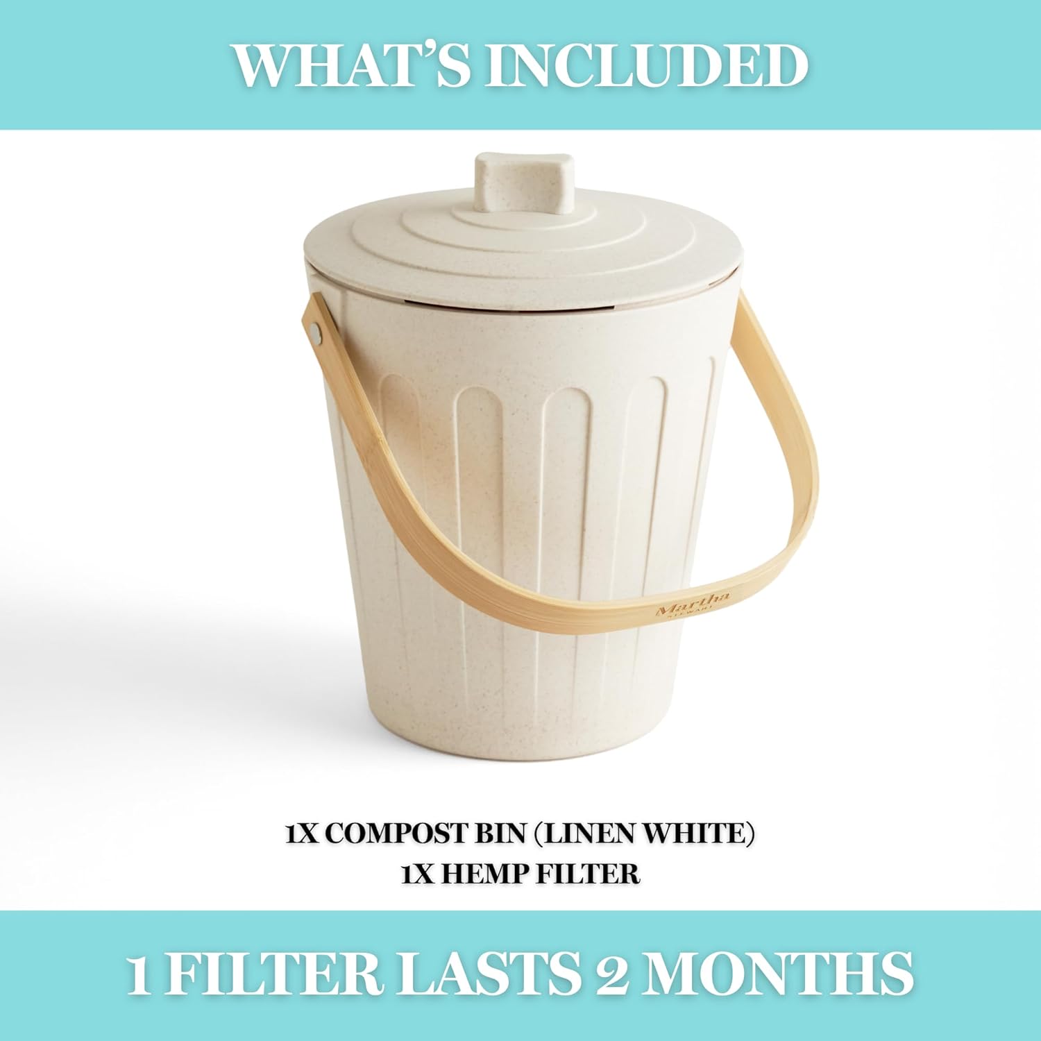 - CONTROL KITCHEN ODORS NATURALLY: The Martha Stewart compost bin for the kitchen features a specially designed lid that filters odors and gasses caused during the composting process.