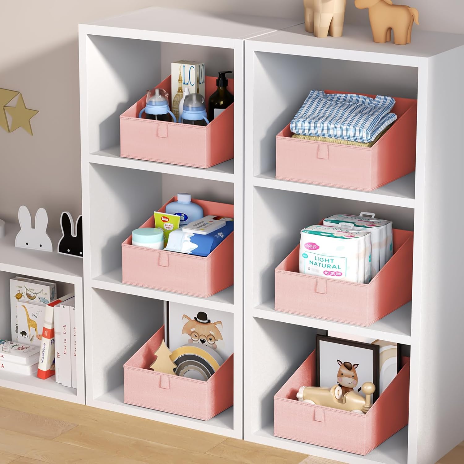 - 【Foldable & Detachable】These fabric bins can be easily folded into a flat state, saving space when not in use. You can use the shelf baskets to store clothes and daily necessities without confusion. Get rid of the regular cardboard box