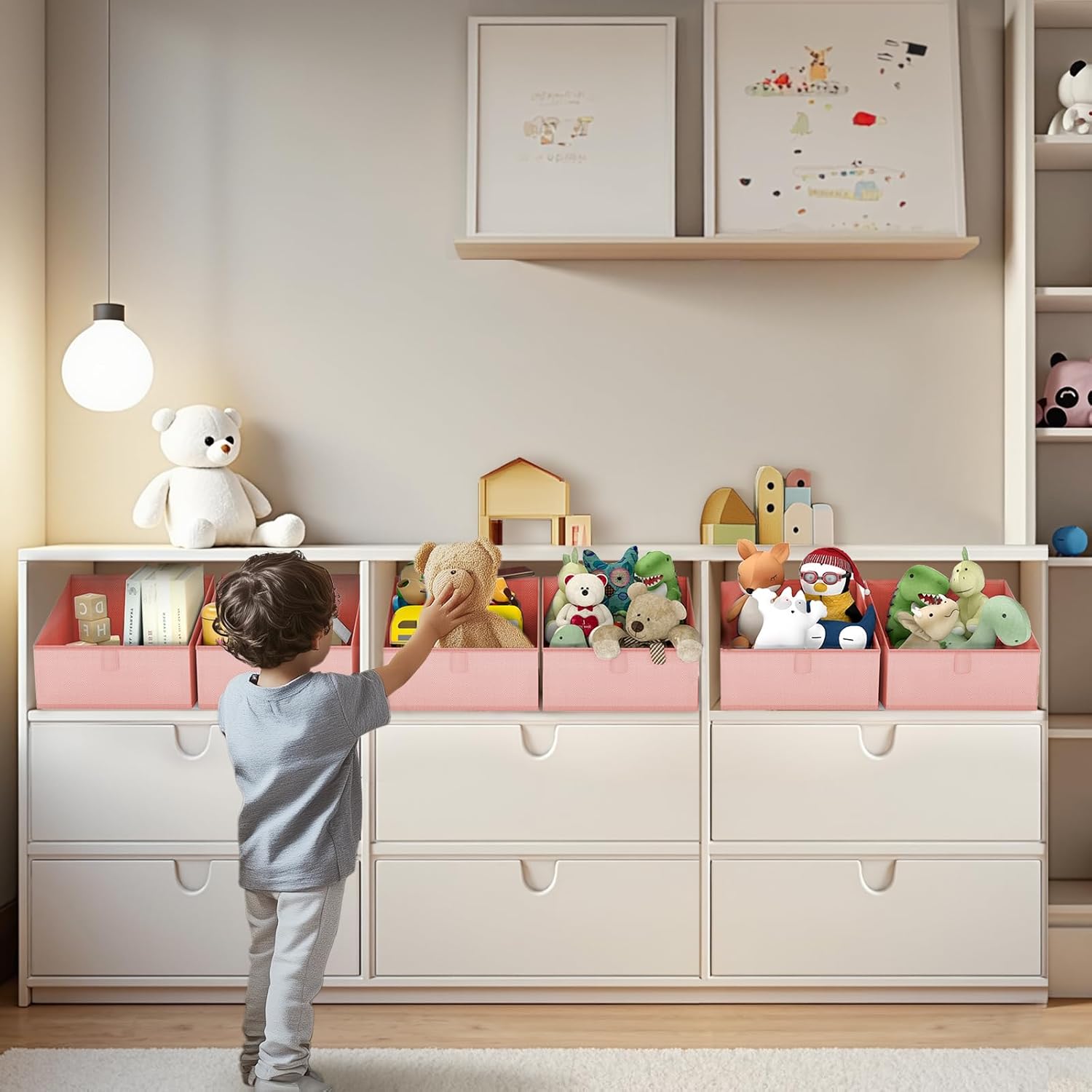 - 【Trapezoidal Design】These storage cubes are Trapezoid design that makes finding things convenient, also allows easy access when putting on the highest shelf. These are ideal closet bins for clothes, bags, shoes, towels, blankets, toys, dolls, and more