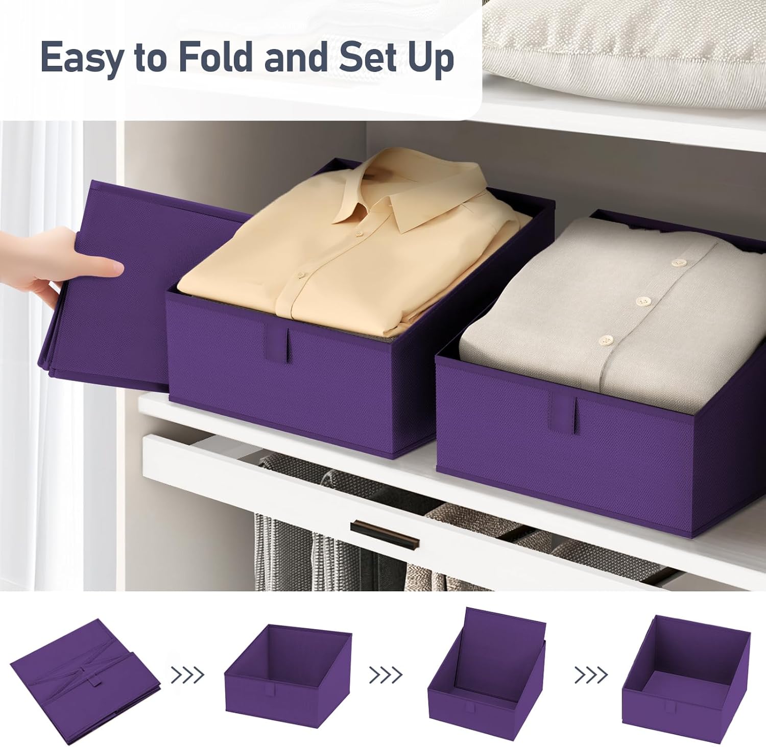 DIMJ Closet Storage Bins 8 Pack - Fabric Trapezoid Closet Organizer Bin, Foldable Storage Baskets for Shelves, Closet Shelf Organizer, Clothing Storage Box for Toys, Books, Towel, Clothes, Purple