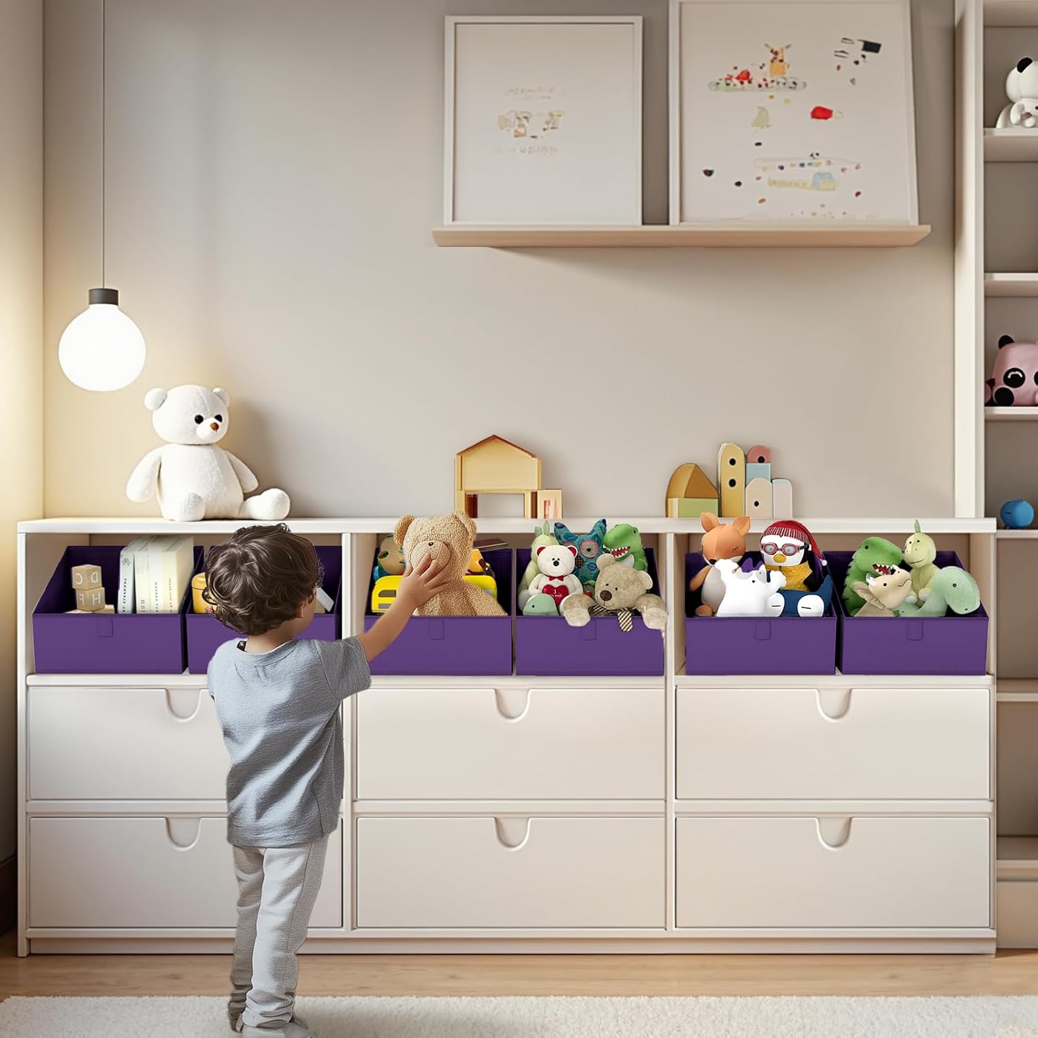 - 【Trapezoidal Design】These storage cubes are Trapezoid design that makes finding things convenient, also allows easy access when putting on the highest shelf. These are ideal closet bins for clothes, bags, shoes, towels, blankets, toys, dolls, and more