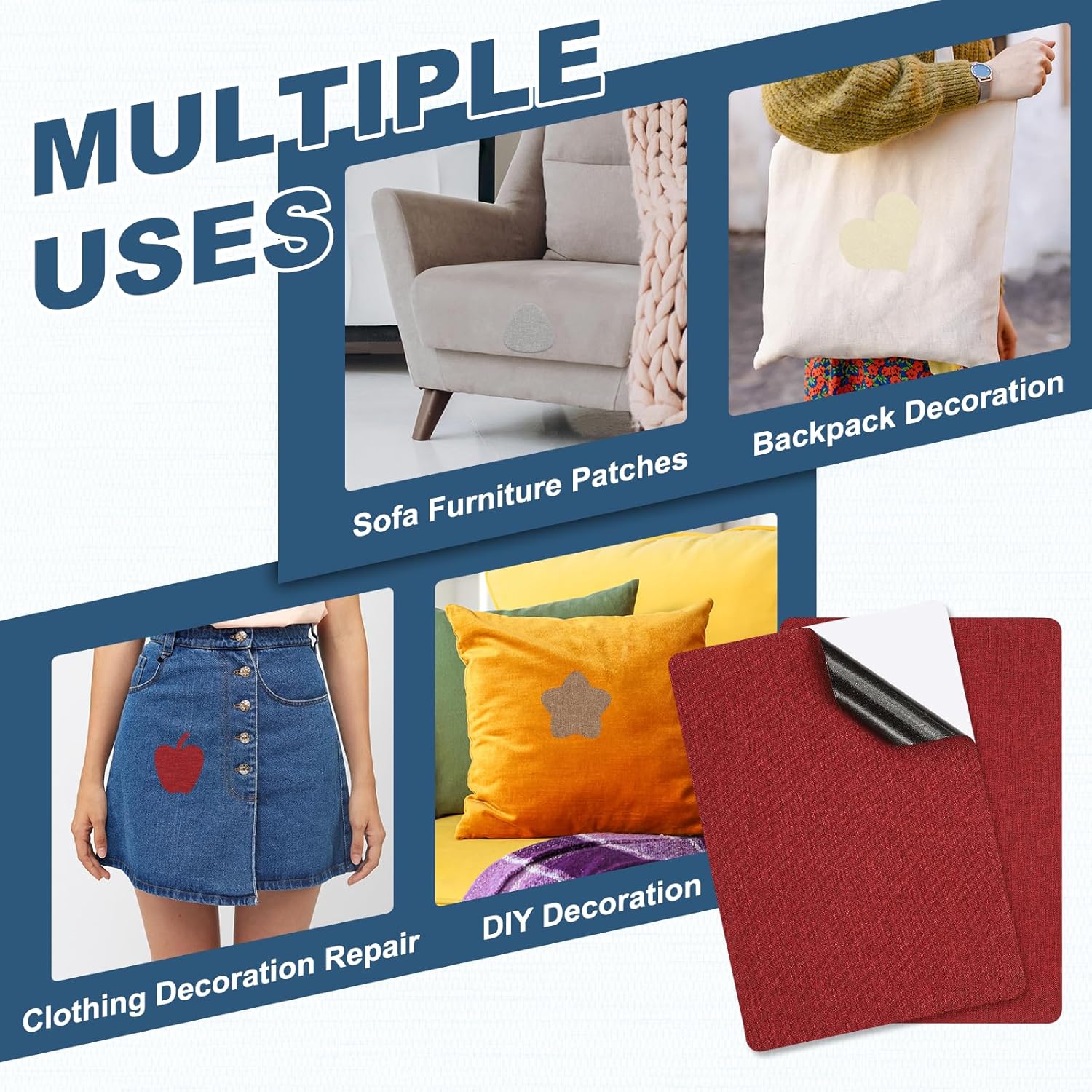 - Color: Red; Material: Linen; Size: 280 x 205mm / 11 x 8 inch(L*W); Packing List: 2 x Fabric Patches Self Adhesive