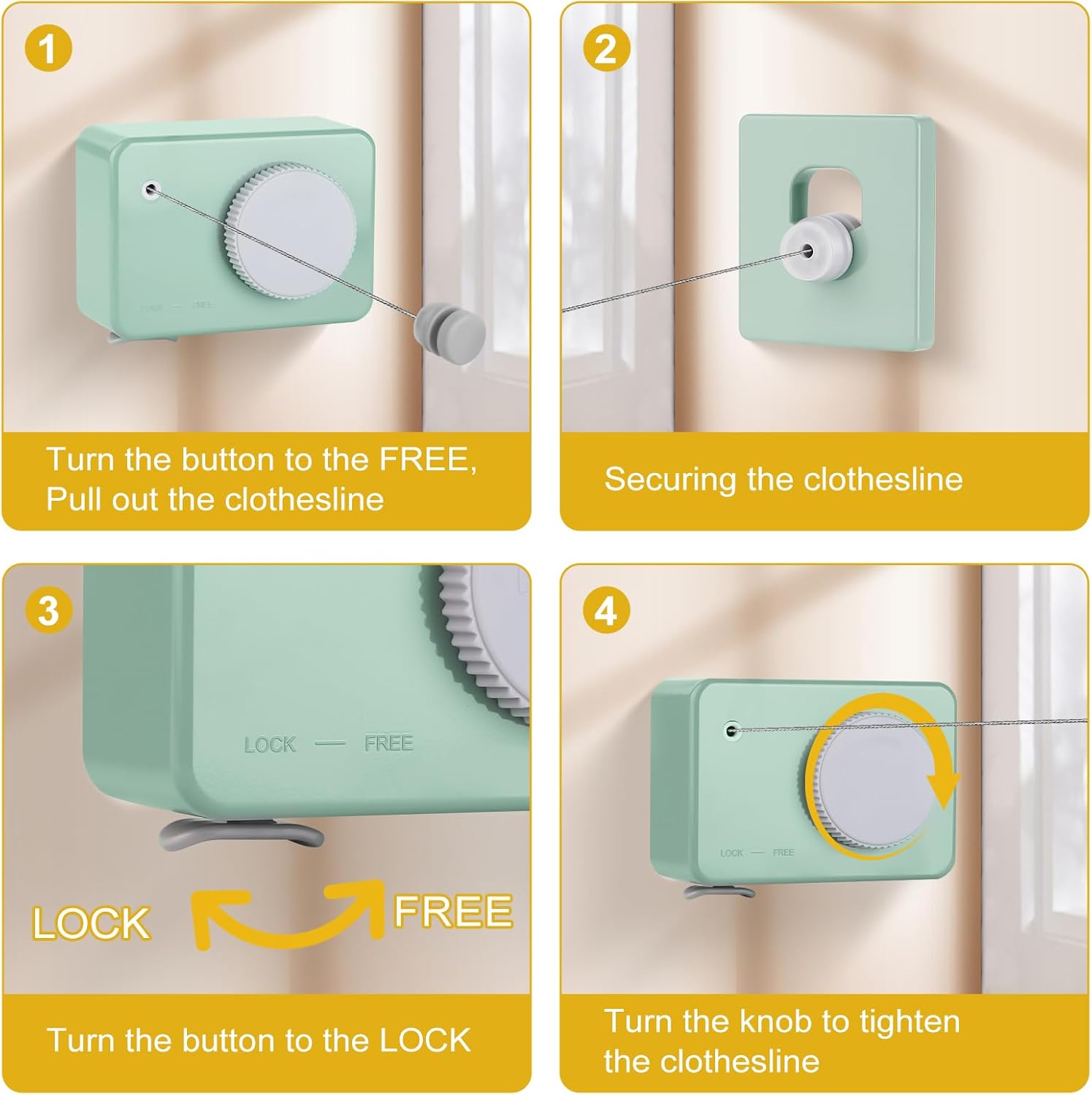 - This is an anti-sagging retractable clothesline indoor/outdoor. While keeping it locked, you can tighten the laundry line retractable by turning the knob in the middle.