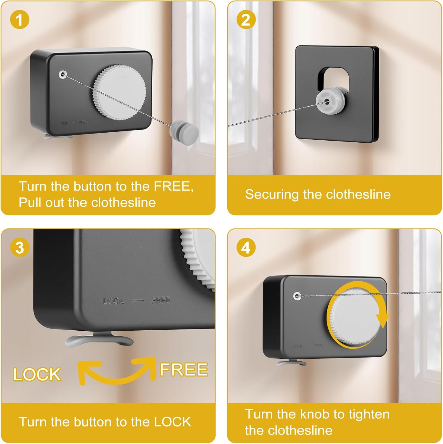 - This is an anti-sagging retractable clothesline indoor/outdoor. While keeping it locked, you can tighten the laundry line retractable by turning the knob in the middle.