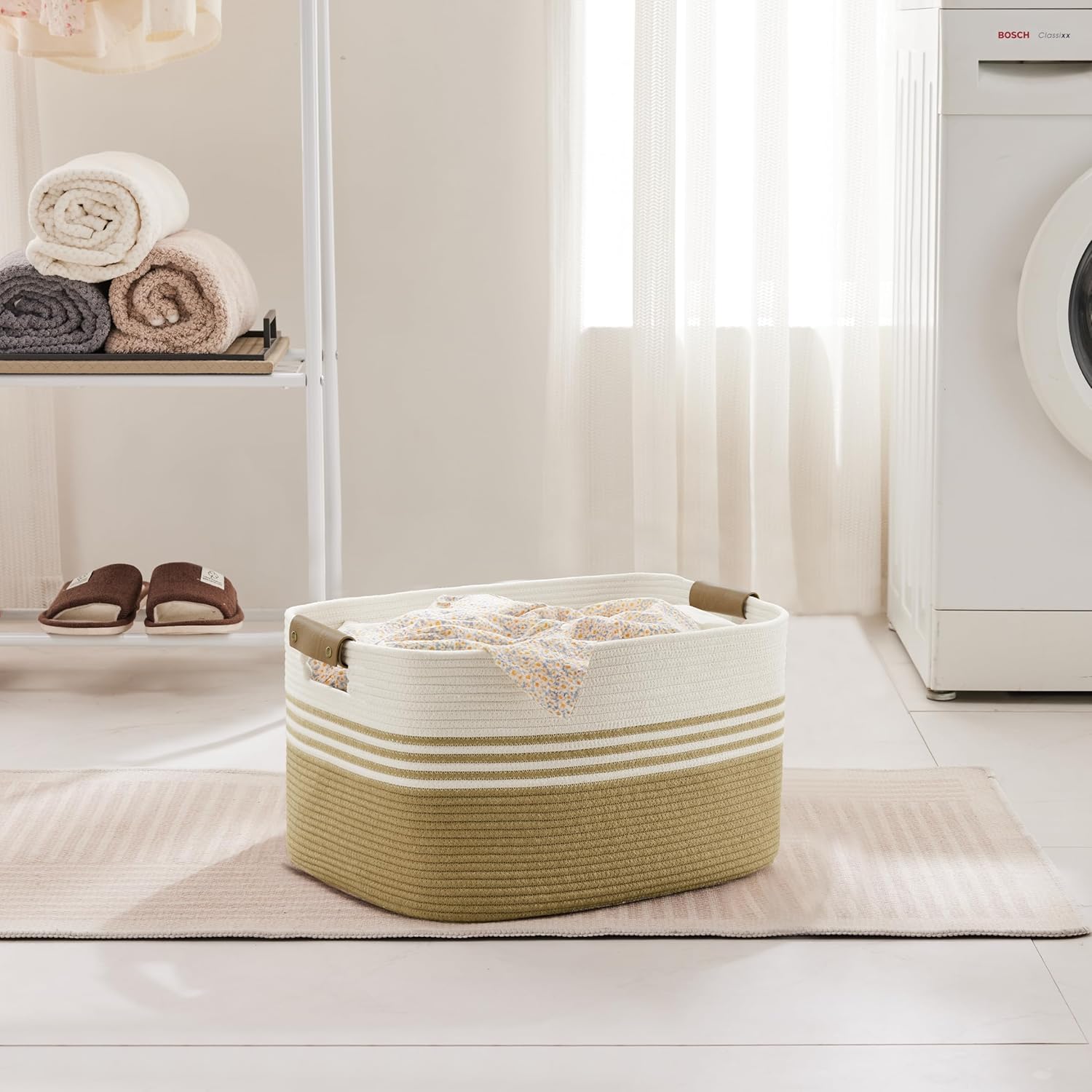 - DURABLE & HOME-FRIENDLY: Natural cotton rope weaving craft. The woven basket is crafted from high-quality cotton thread, making it sturdy and durable for long-term use. The SunNewt Large rectangular basket has no sharp edges, securing family safety and suitable for households with kids, the elderly , and pets